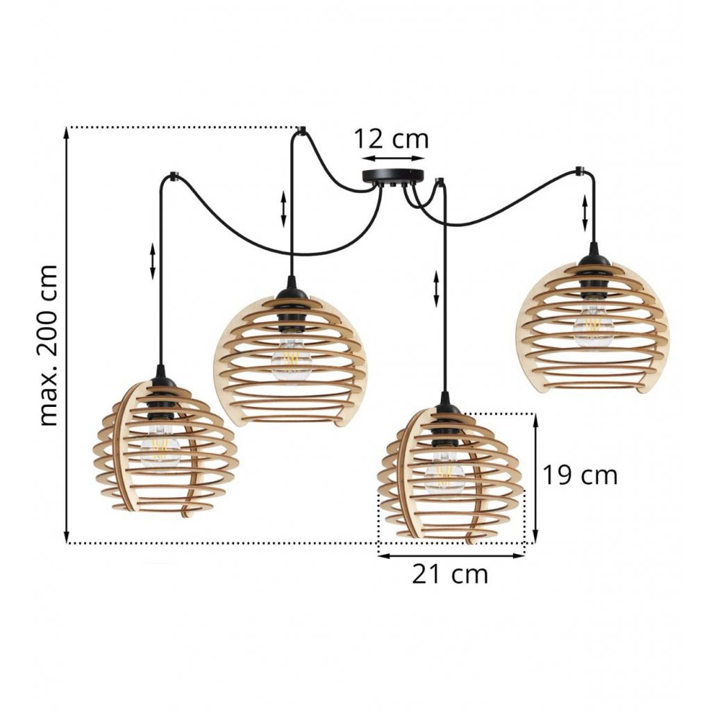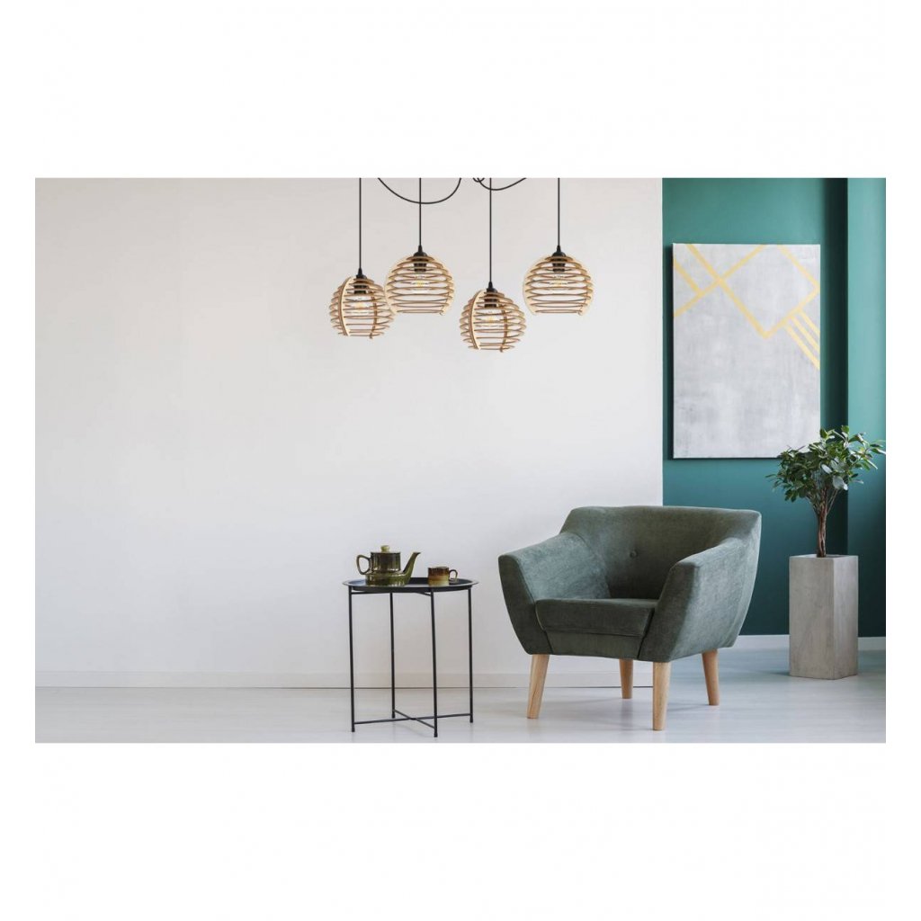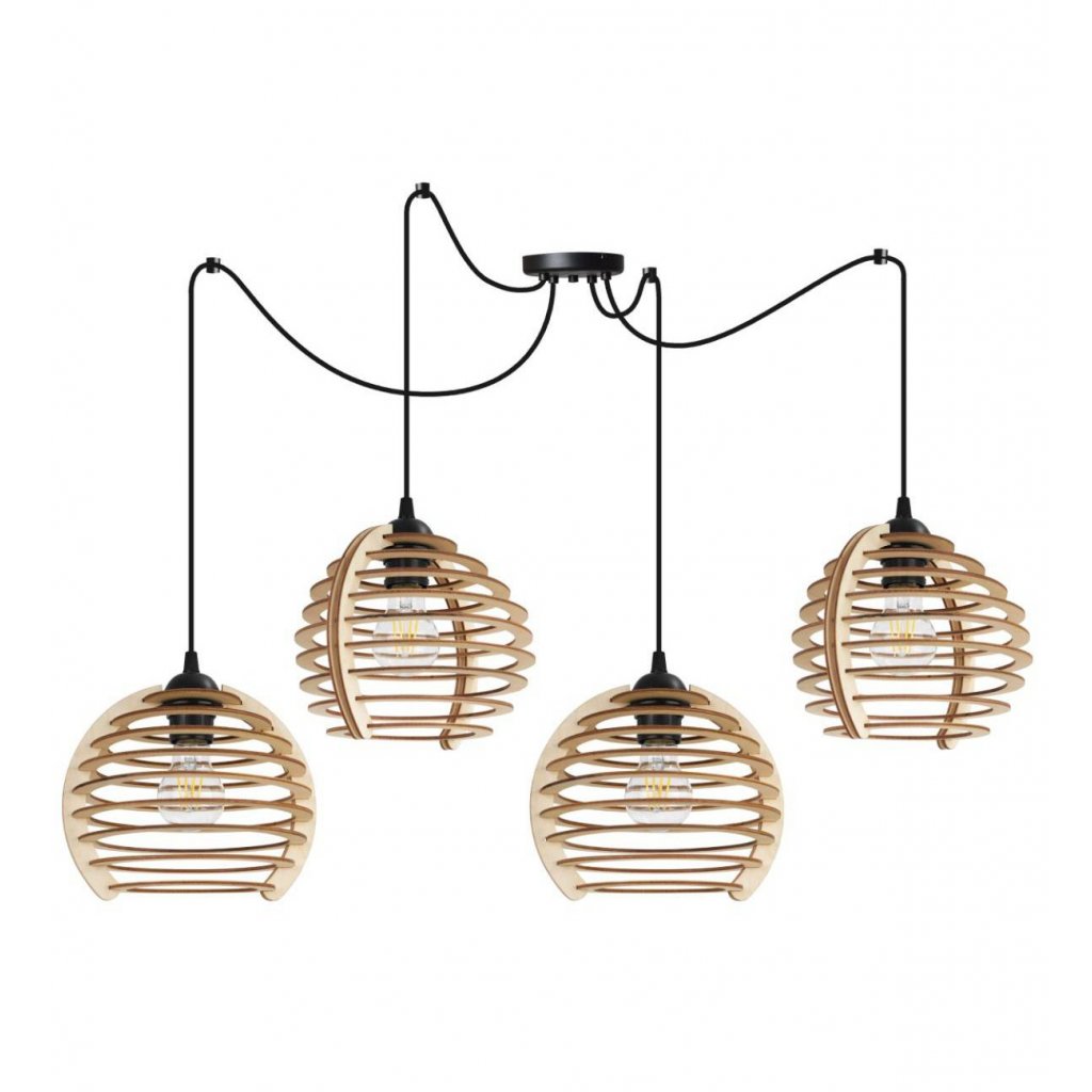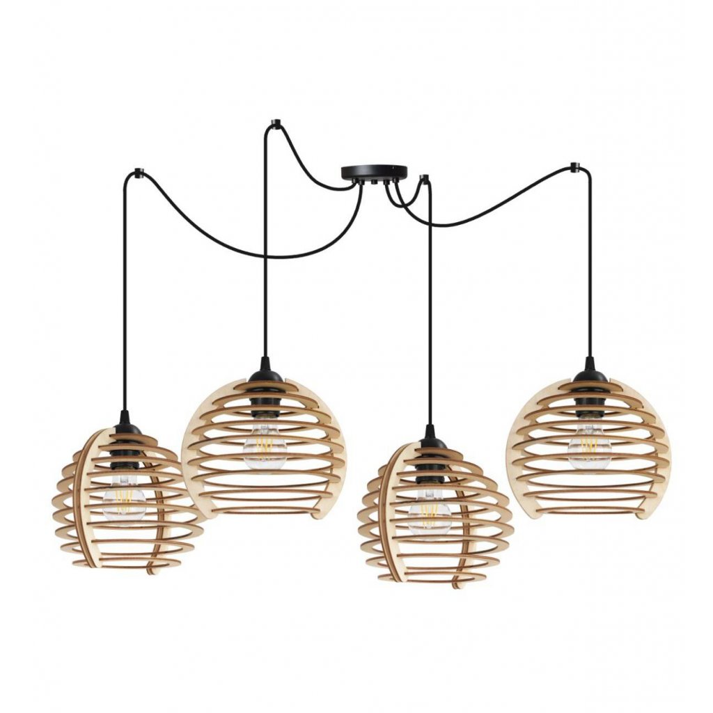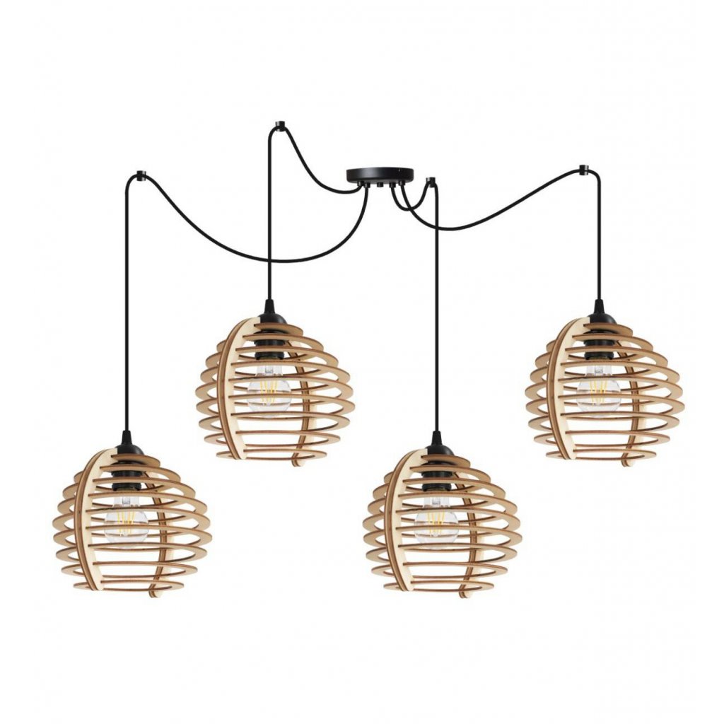 Závěsné svítidlo Timber Spider, 4x dřevěné stínítko, n