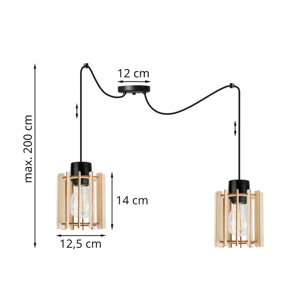 Závěsné svítidlo Timber Spider 7, 2x dřevěné stínítko