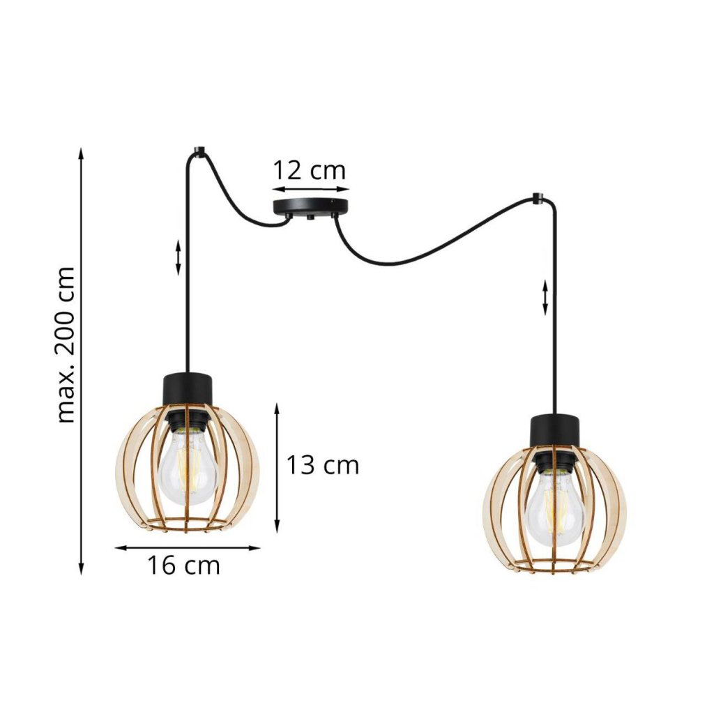 Závěsné svítidlo Timber Spider 8, 2x dřevěné stínítko