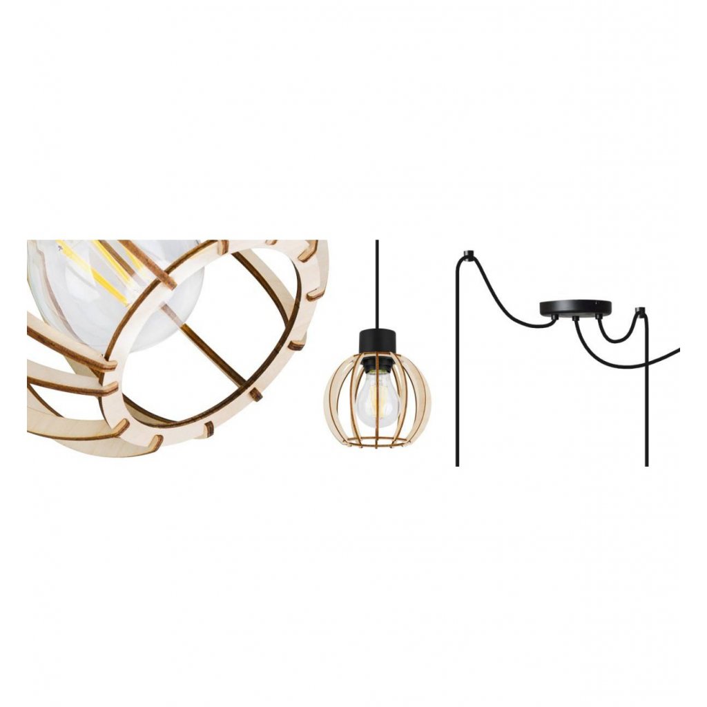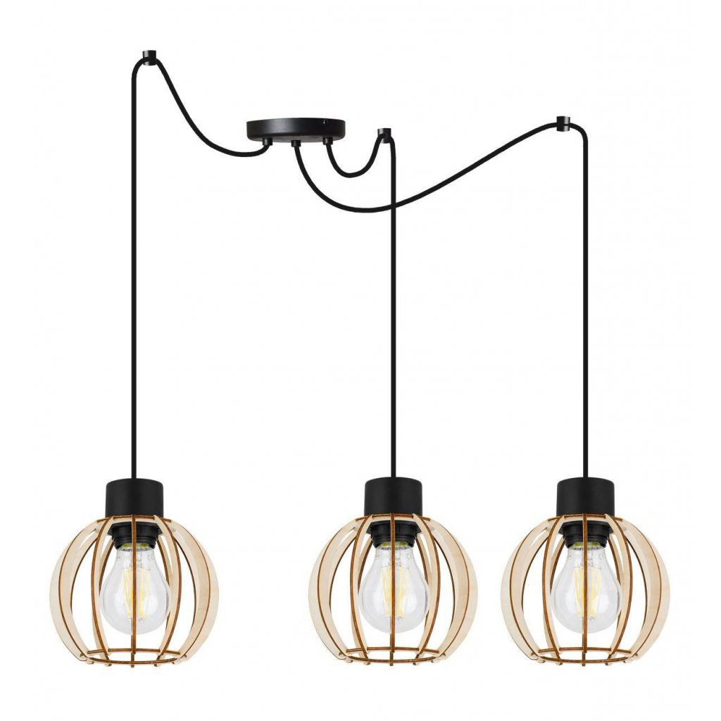 Závěsné svítidlo Timber Spider 8, 3x dřevěné stínítko