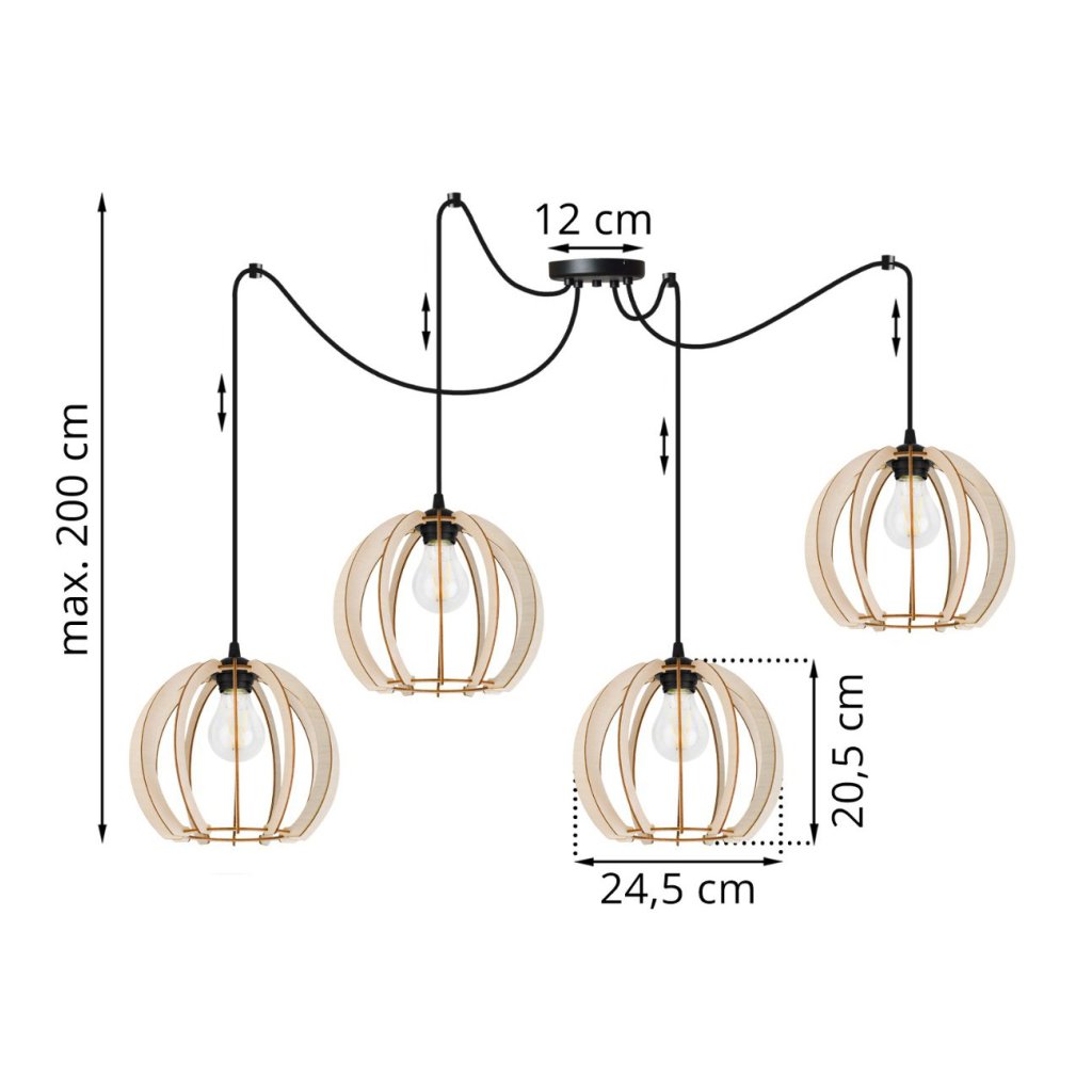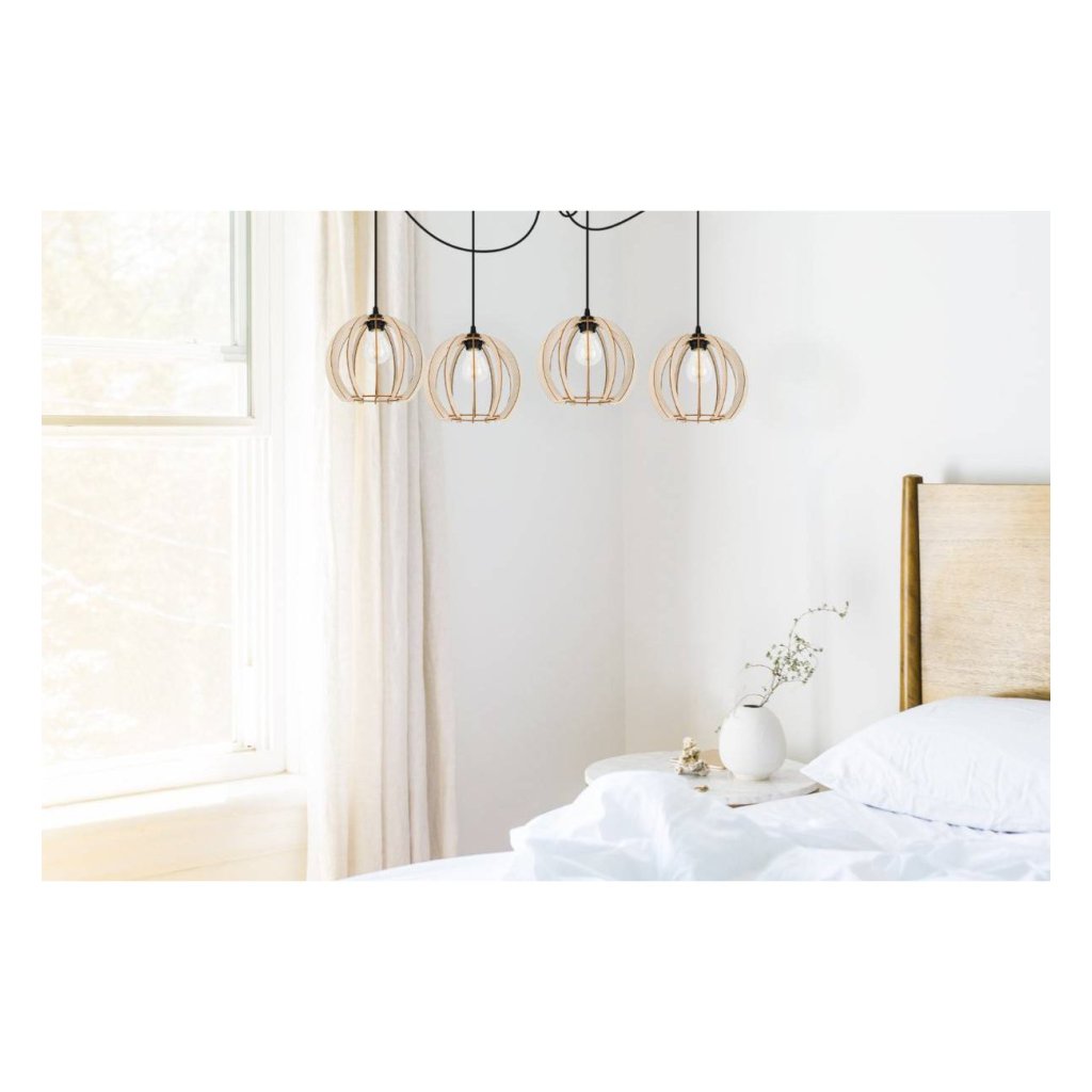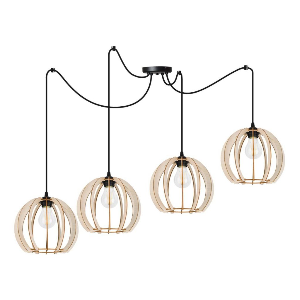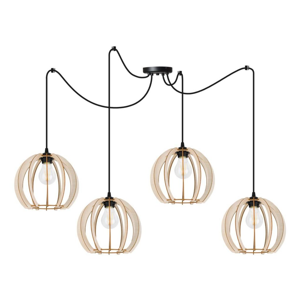 Závěsné svítidlo Timber Spider 9, 4x dřevěné stínítko