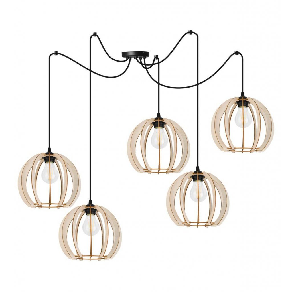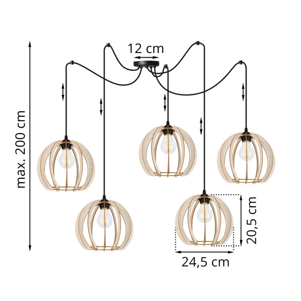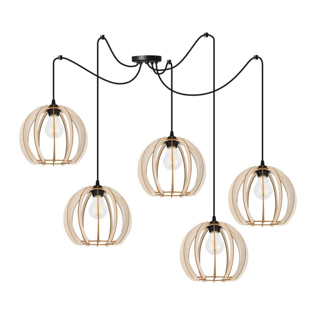 Závěsné svítidlo Timber Spider 9, 5x dřevěné stínítko