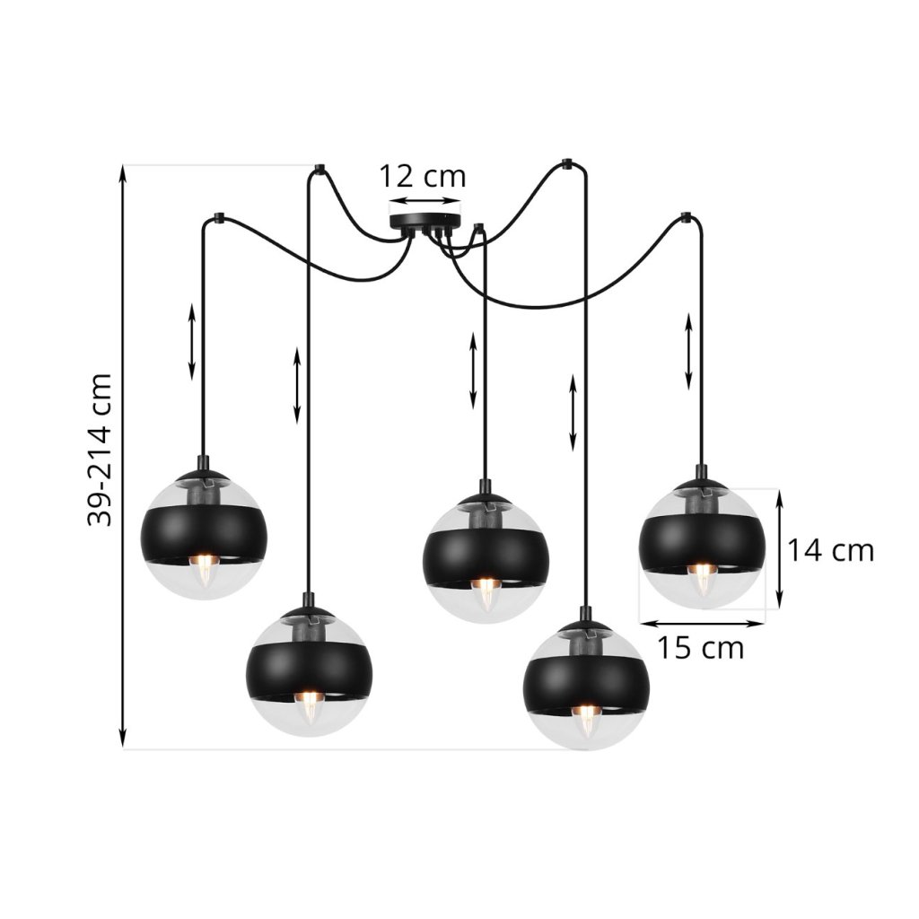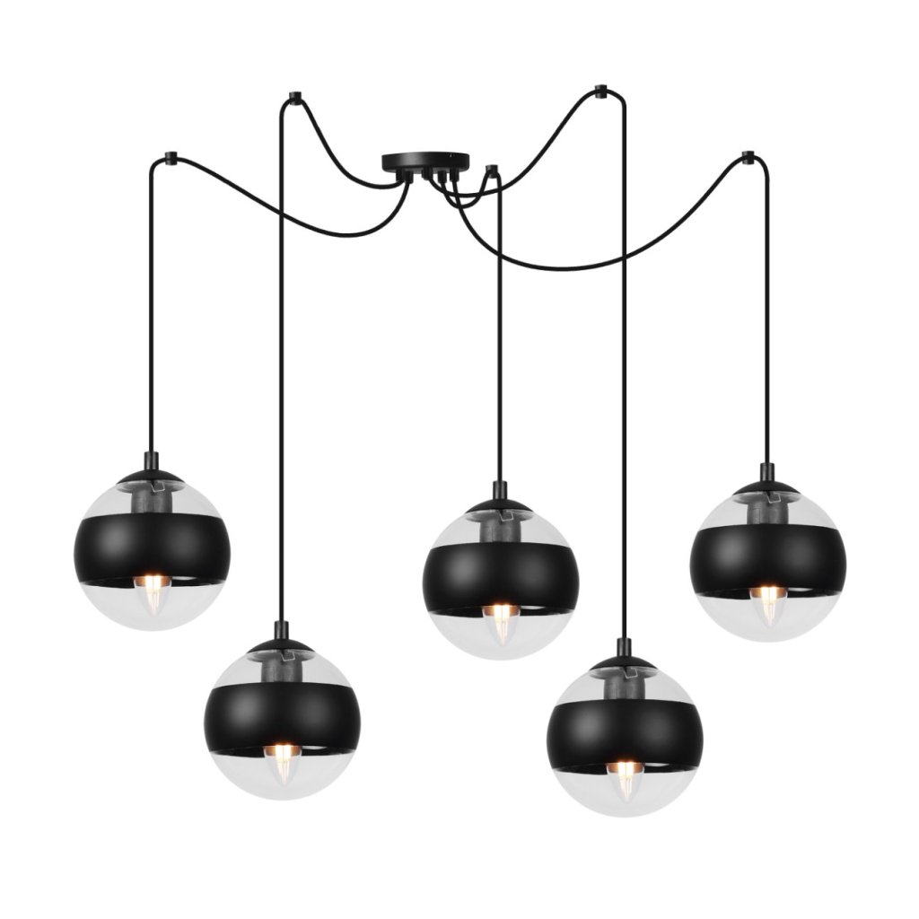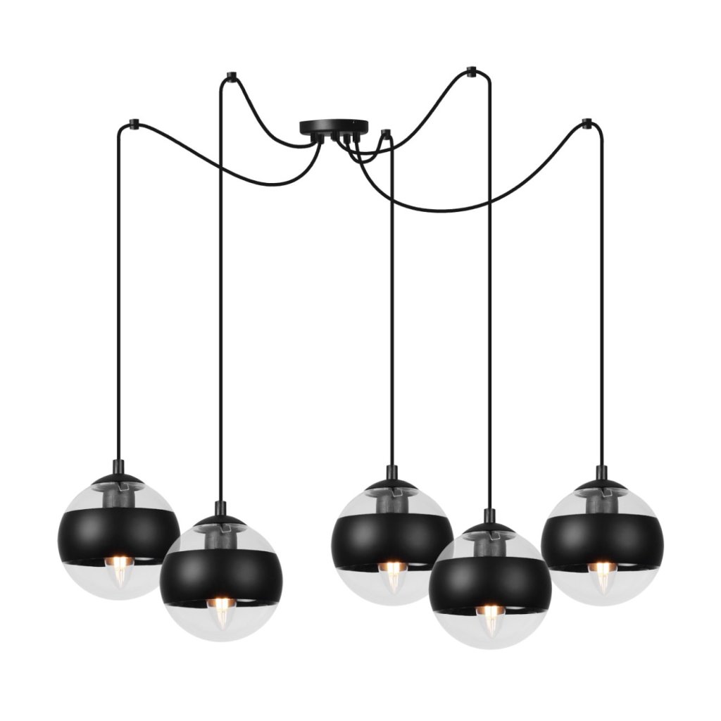 Závěsné svítidlo Toledo Spider, 5x černé/transparentní skleněné stínítko, B