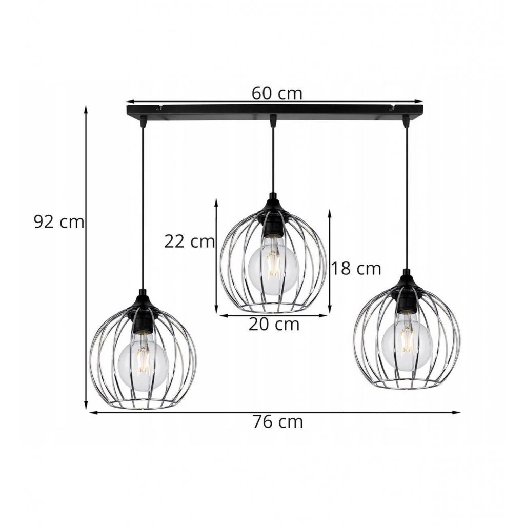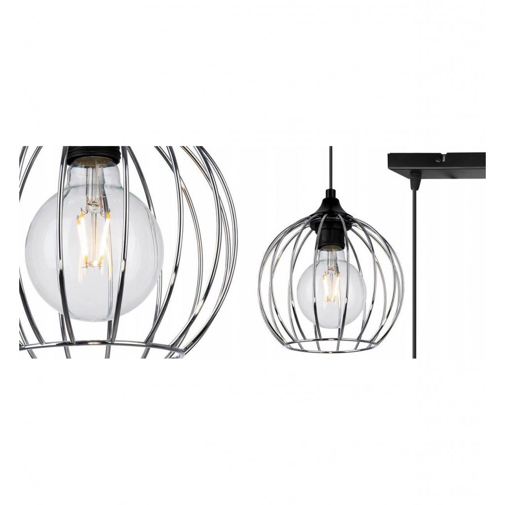 Závěsné svítidlo Toronto, 3x chromové drátěné stínidlo