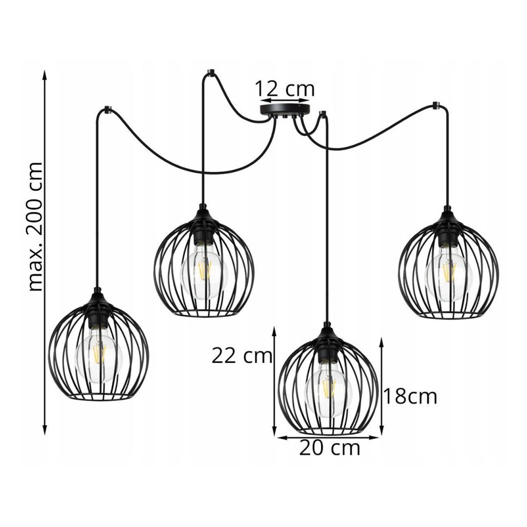 Závěsné svítidlo Toronto Spider, 4x černé drátěné stínítko