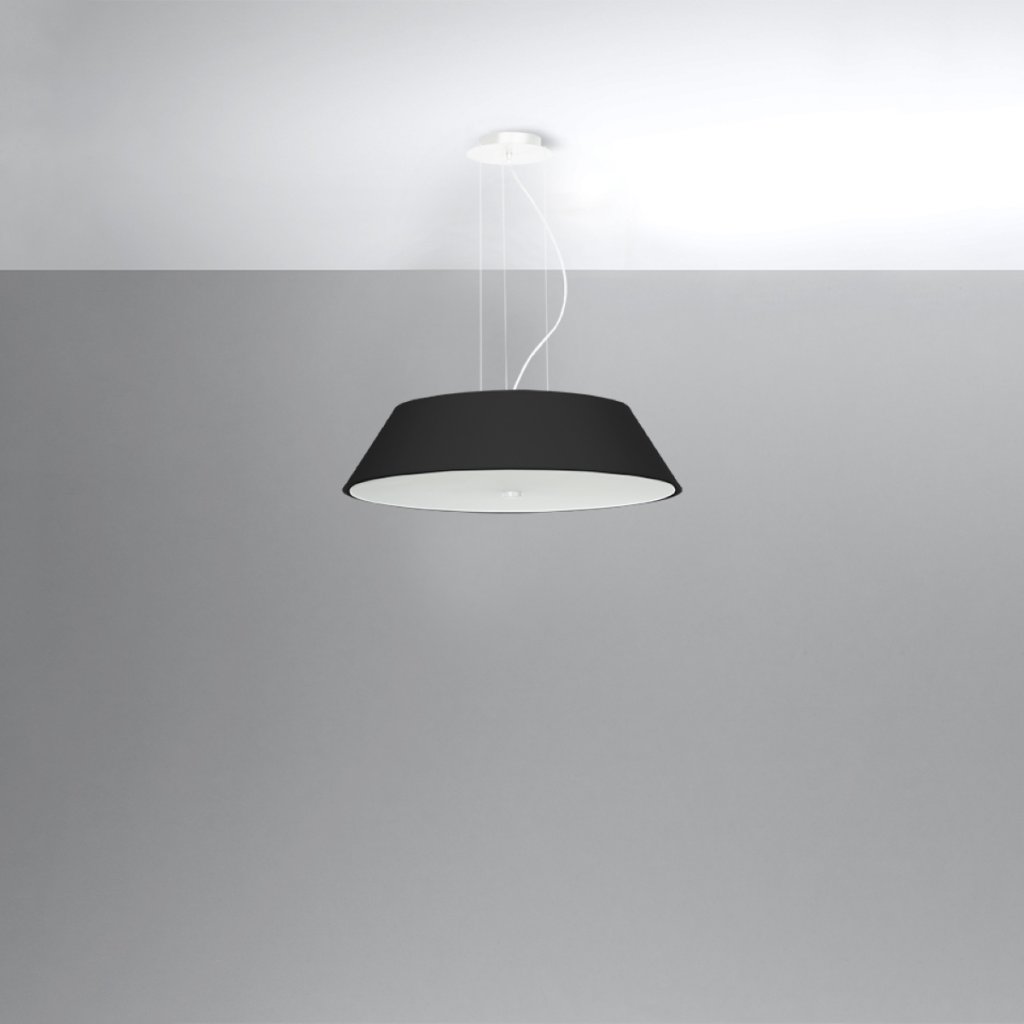 Závěsné svítidlo Vega, 1x černé textilní stínítko, (bílé sklo), (fi 60 cm)