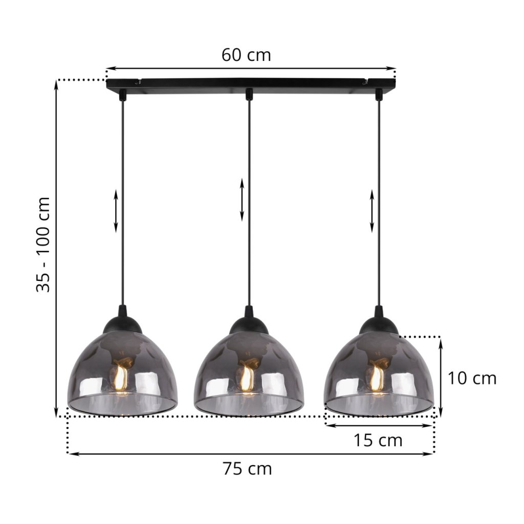 Závěsné svítidlo Venice, 3x grafitové skleněné stínítko