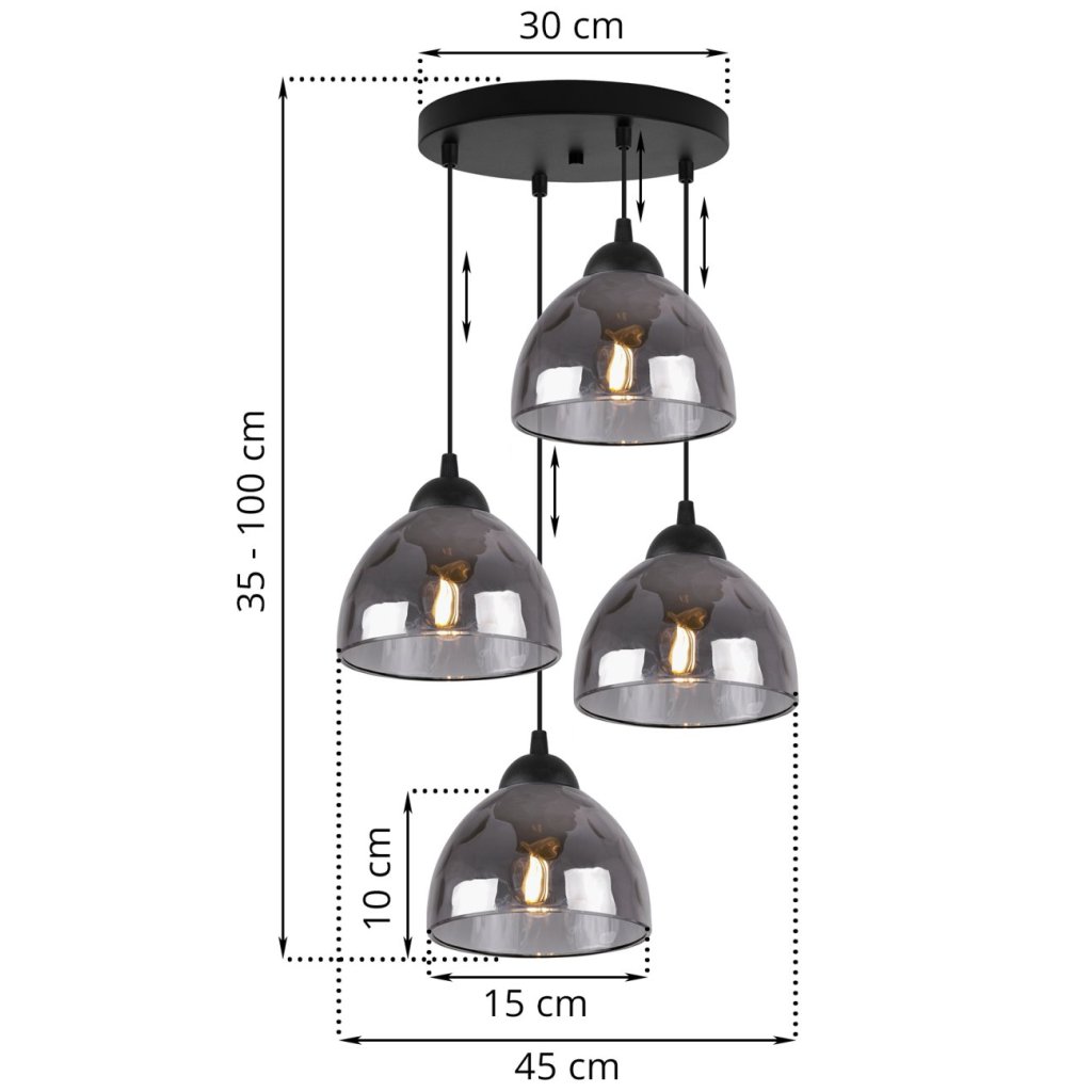 Závěsné svítidlo Venice, 4x grafitové skleněné stínítko, O