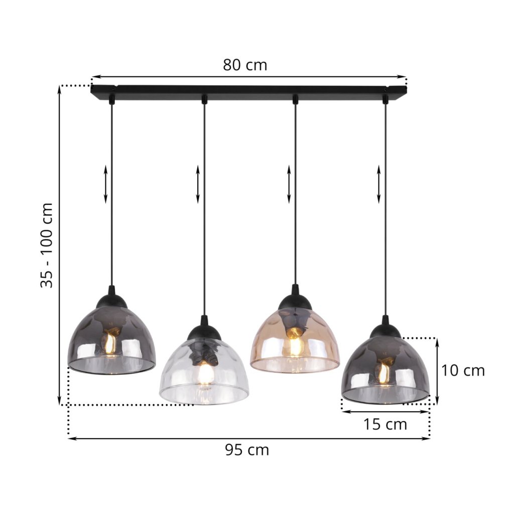 Závěsné svítidlo Venice, 4x skleněné stínítko (mix 3 barev)