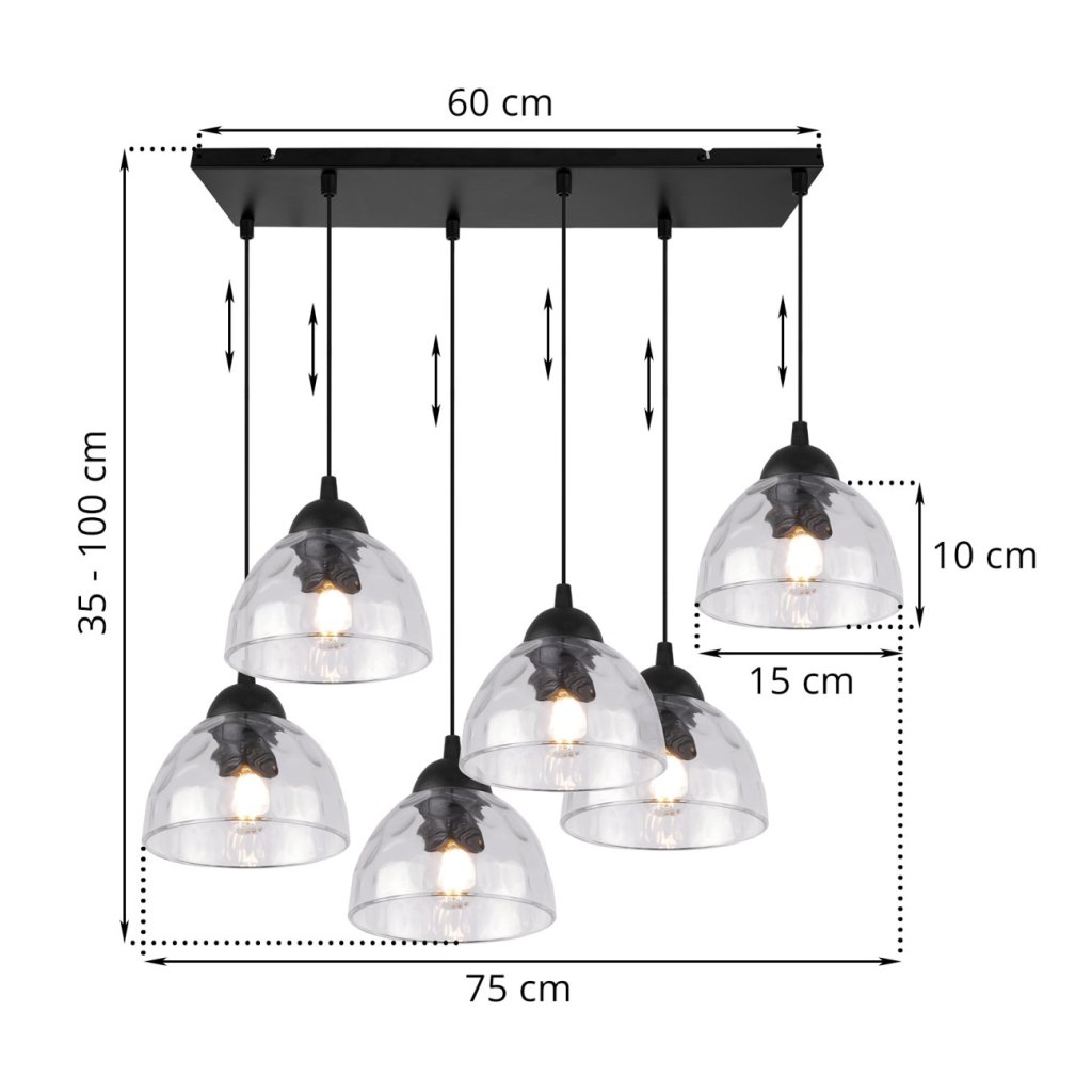 Závěsné svítidlo Venice, 6x čiré skleněné stínítko