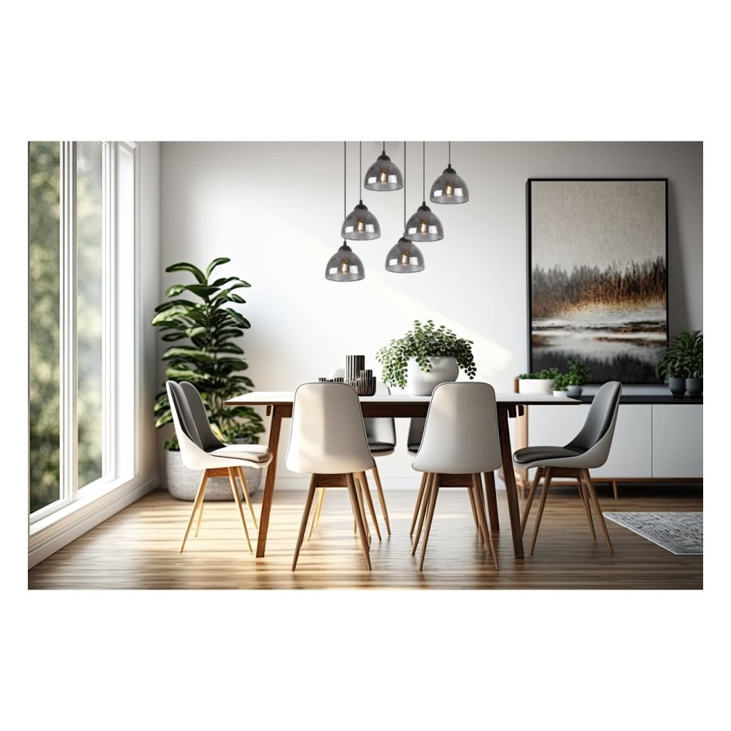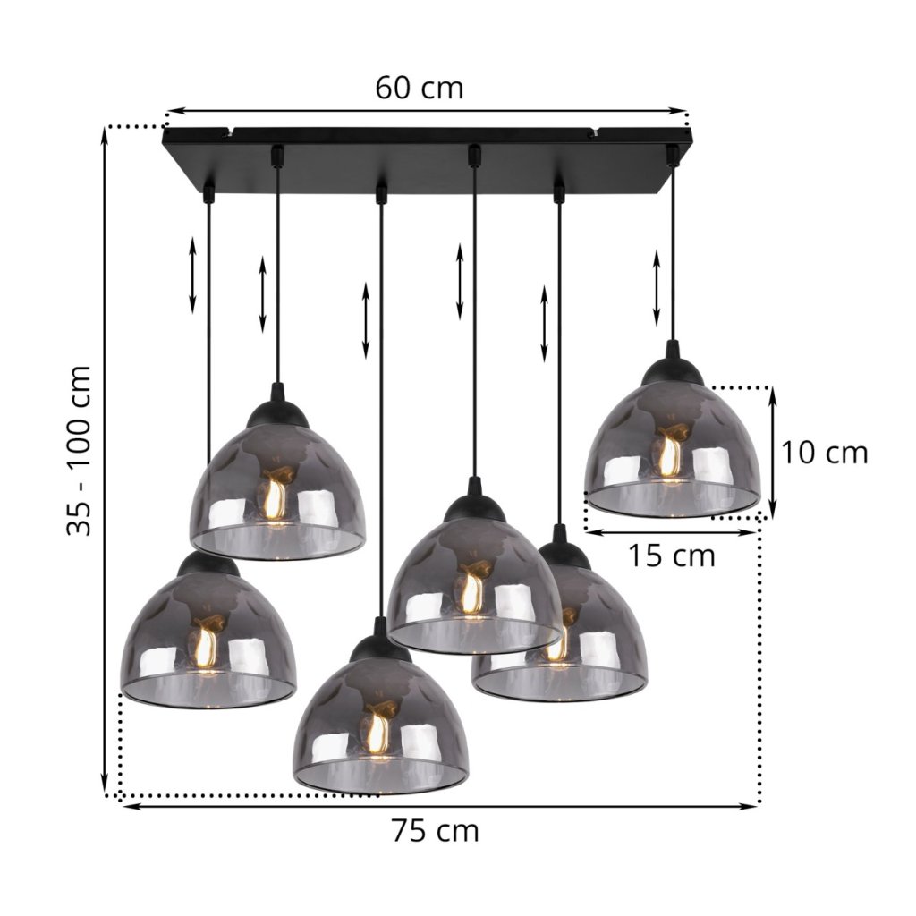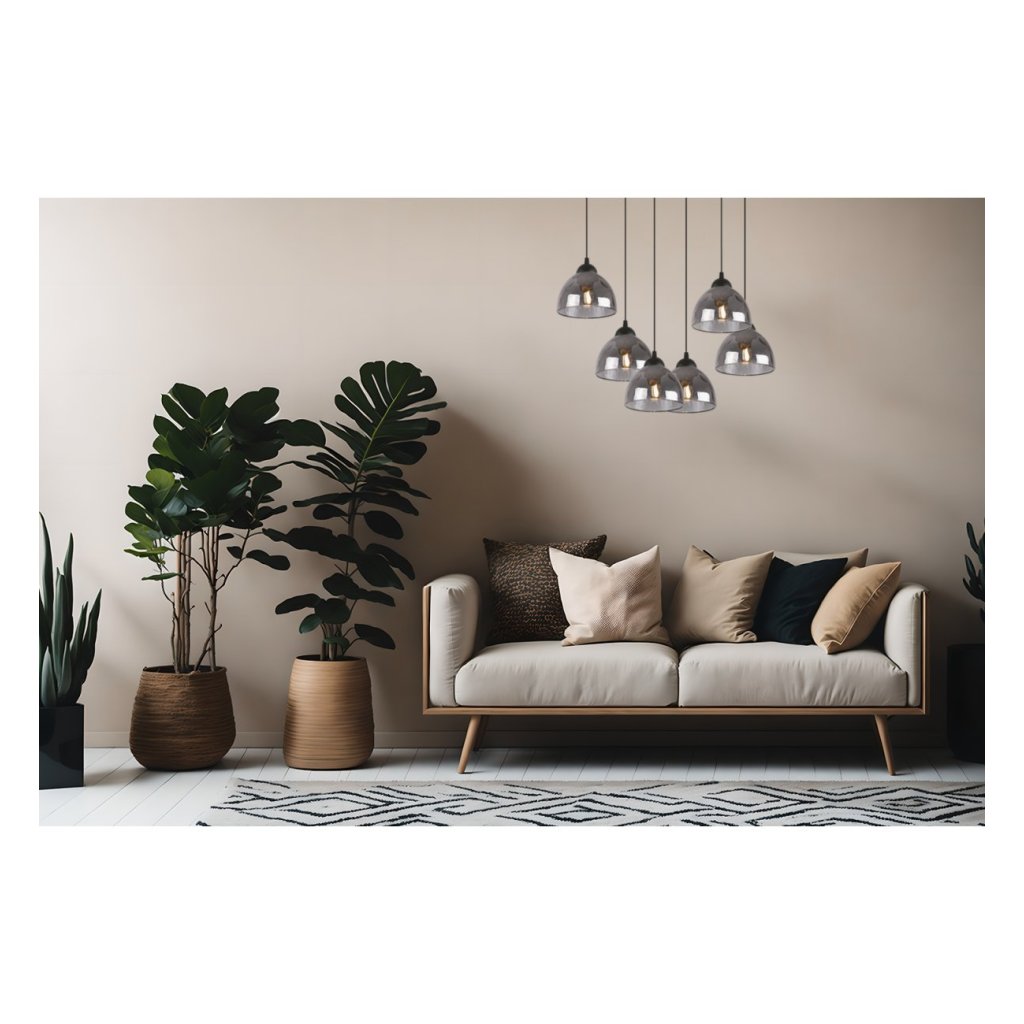 Závěsné svítidlo Venice, 6x grafitové skleněné stínítko