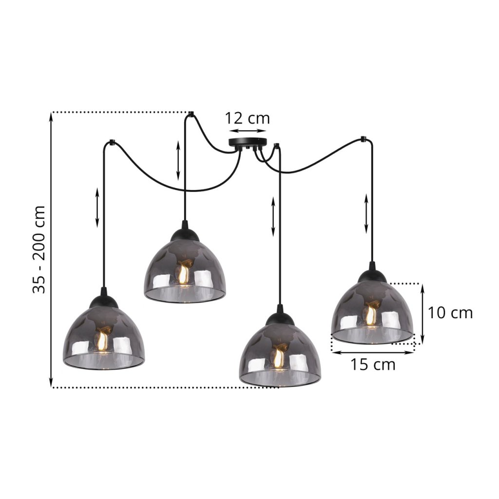 Závěsné svítidlo Venice Spider, 4x grafitové skleněné stínítko