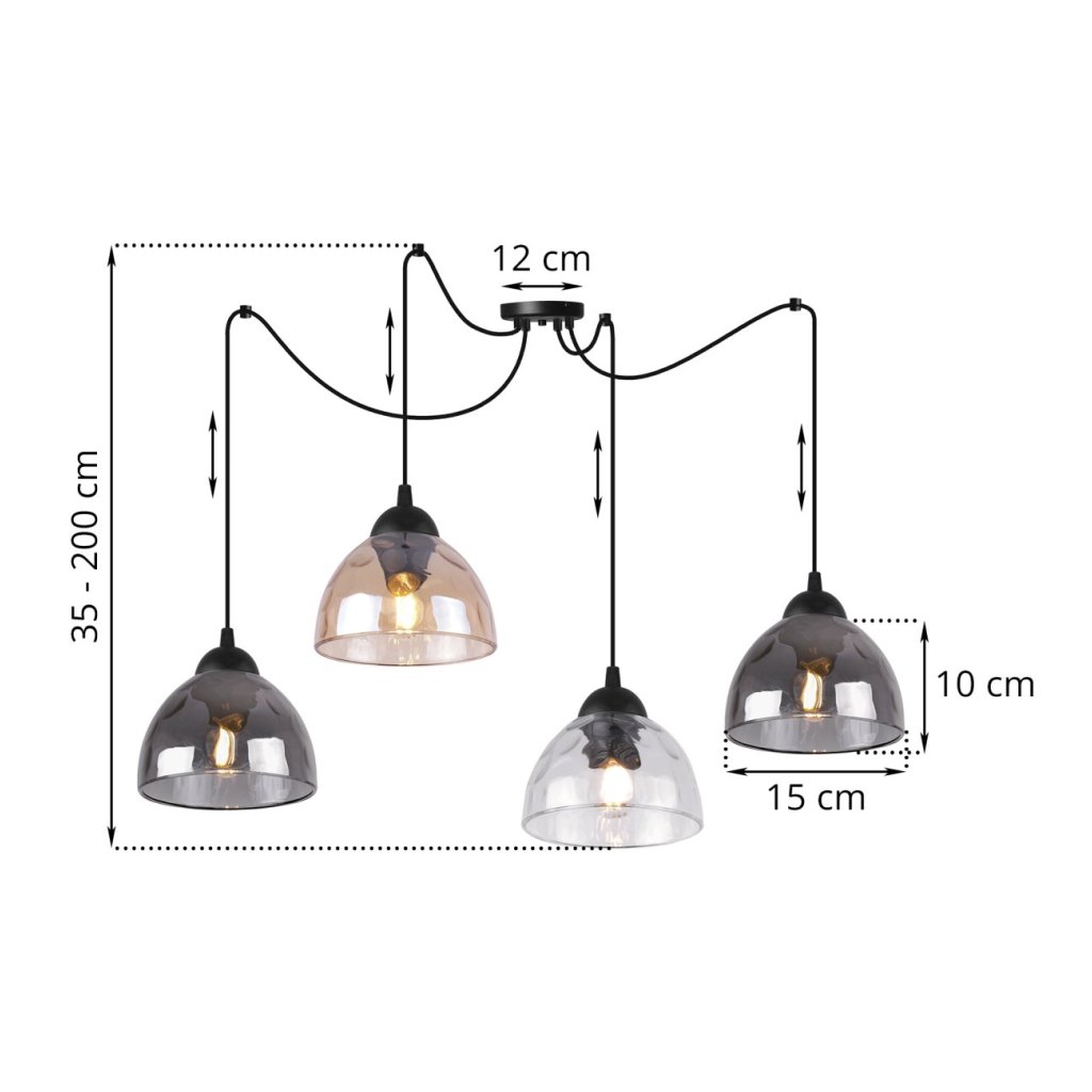 Závěsné svítidlo Venice Spider, 4x skleněné stínítko (mix 3 barev)