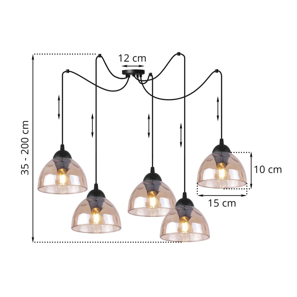 Závěsné svítidlo Venice Spider, 5x medové skleněné stínítko