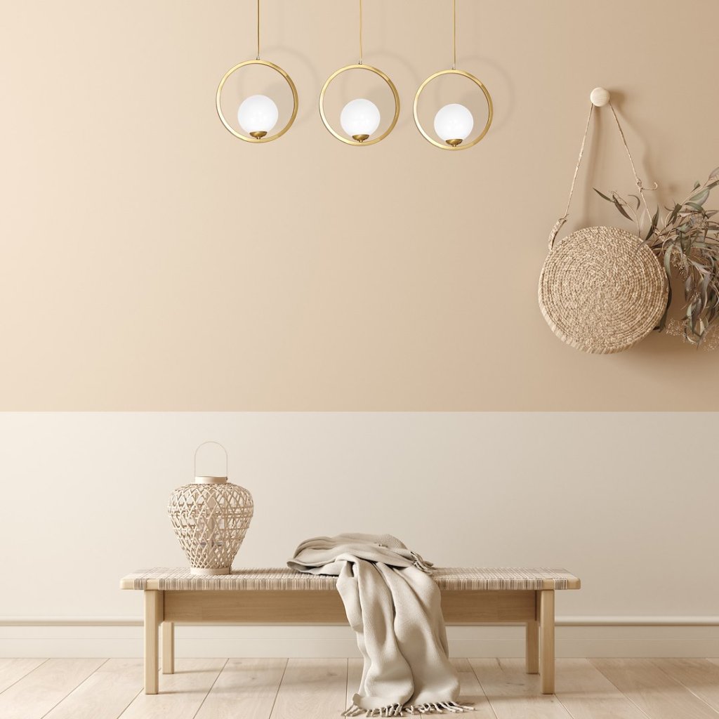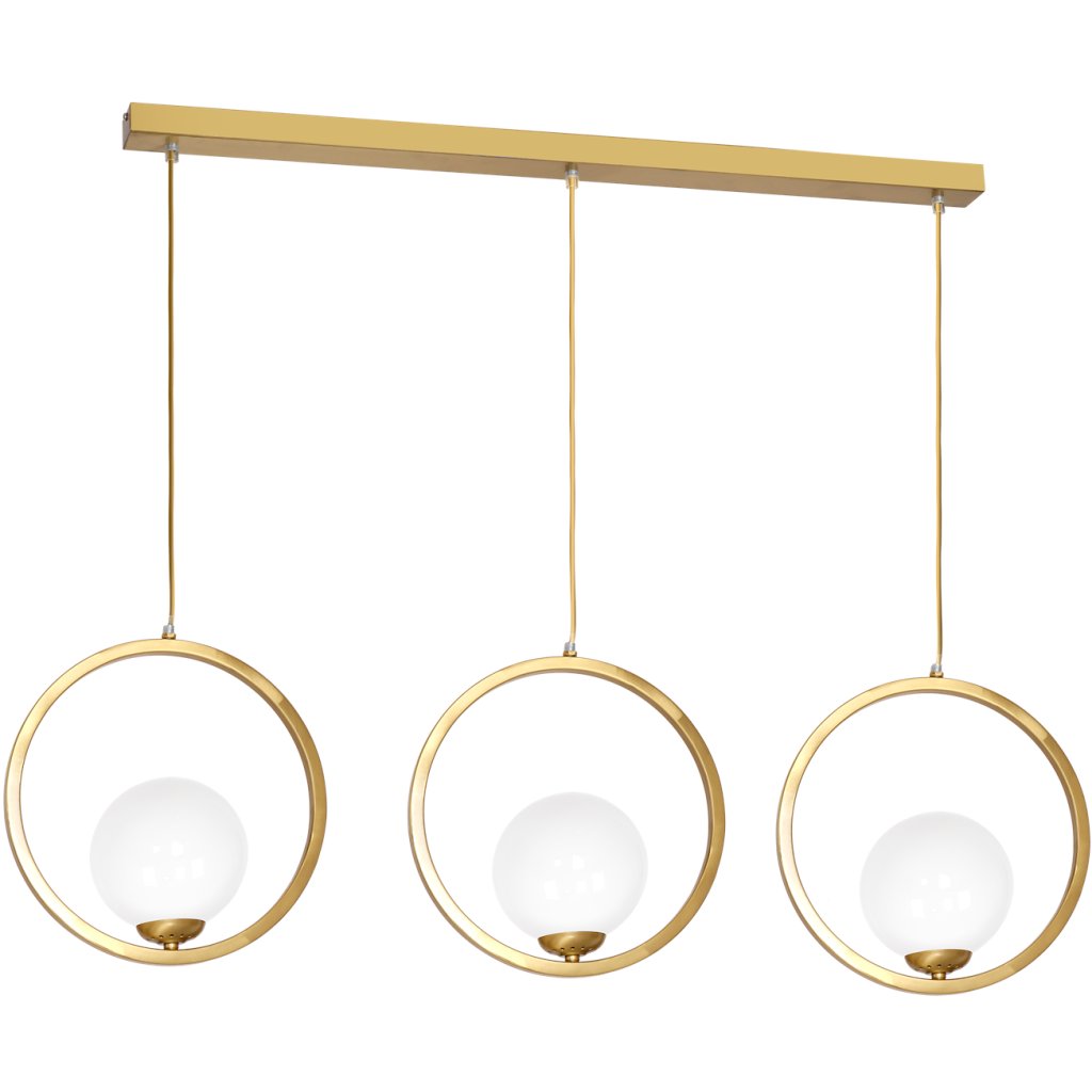 Trojité závěsné svítidlo je navrženo tak, aby rovnoměrně osvětlilo větší prostor a zároveň působilo jako designový prvek . Díky použití kvalitního kovu a skla působí celé zpracování masivně, ale zároveň jemně a luxusně.