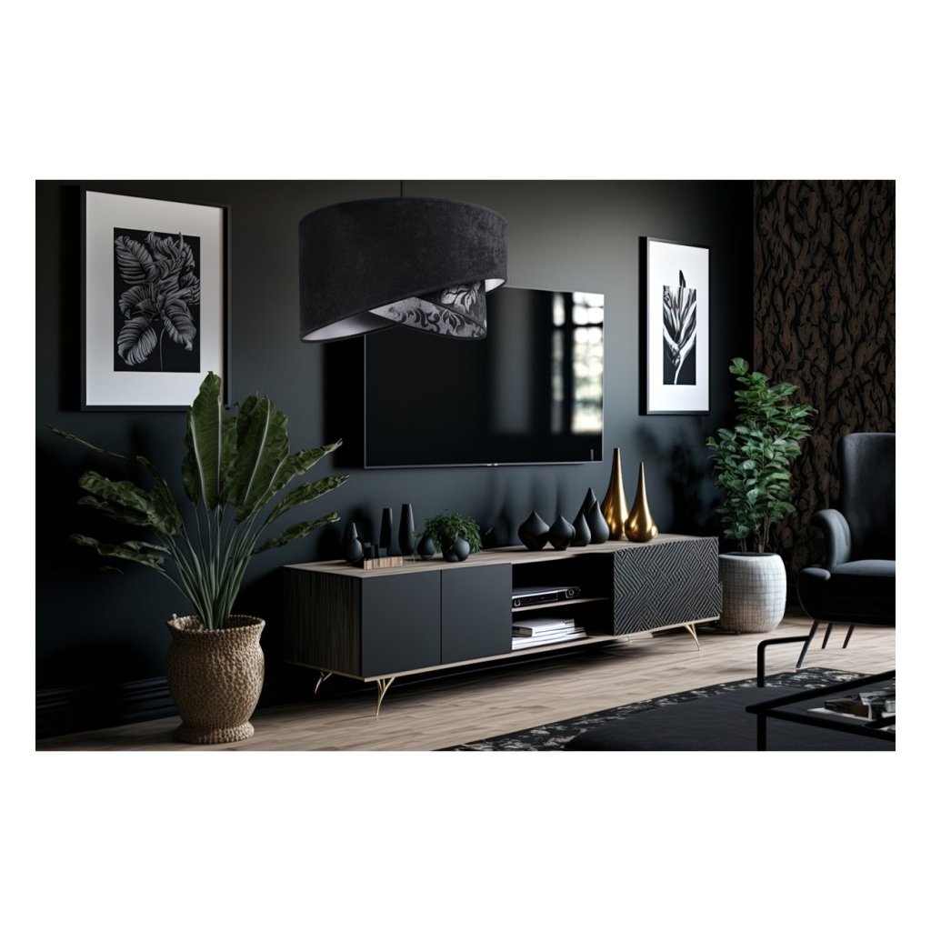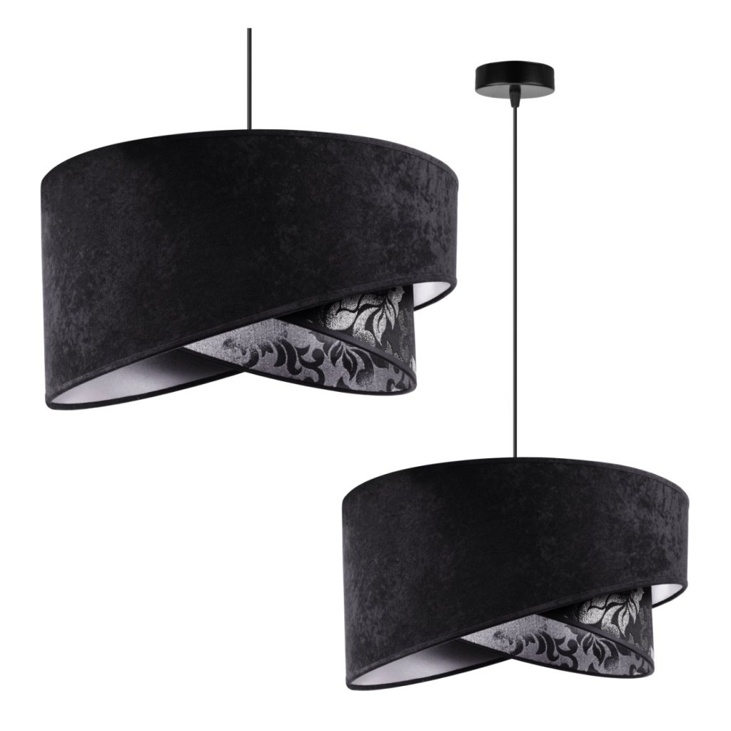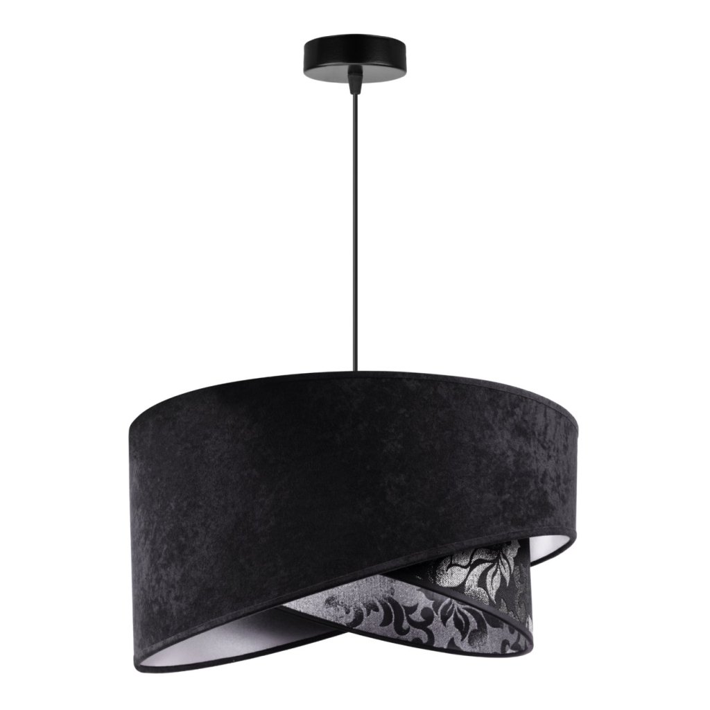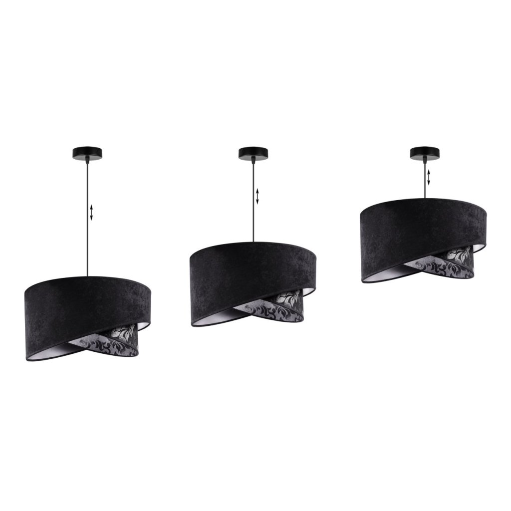 Závěsné svítidlo Werona, 1x černé textilní stínítko se vzorem, s