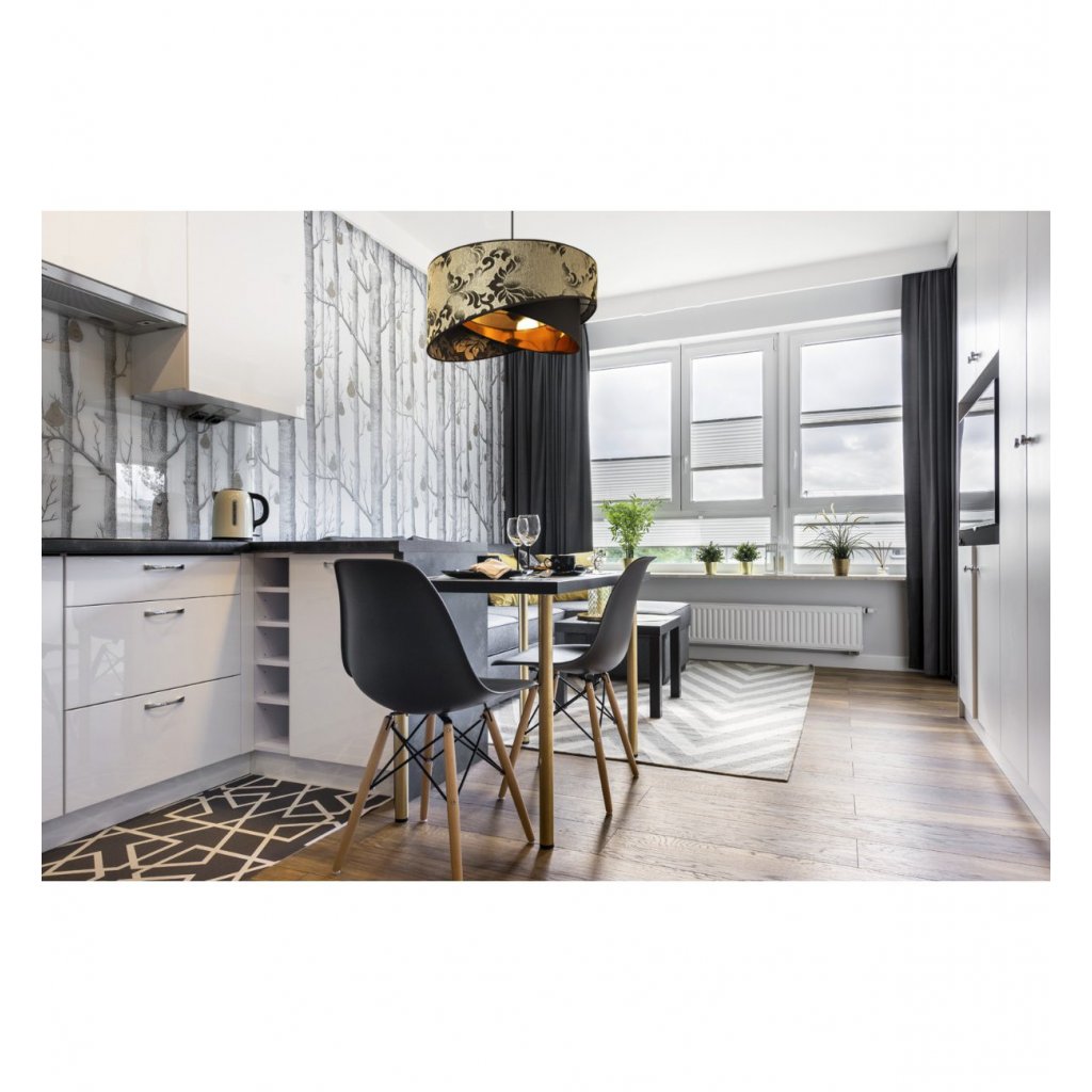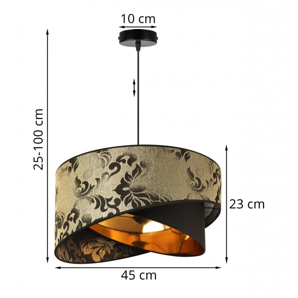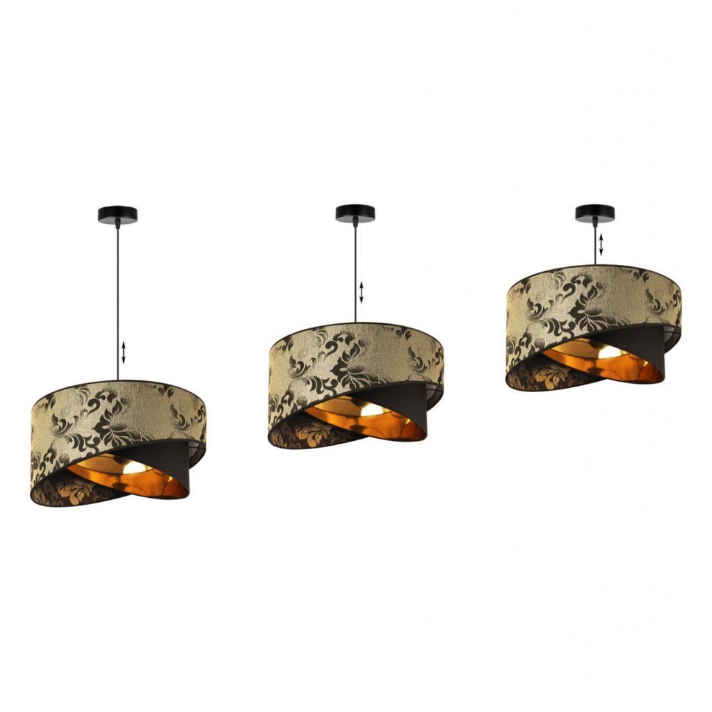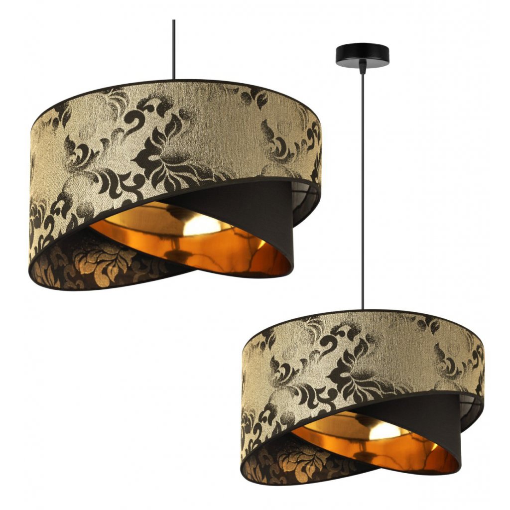 Závěsné svítidlo Werona 1, 1x černé/zlaté textilní stínítko se vzorem, g
