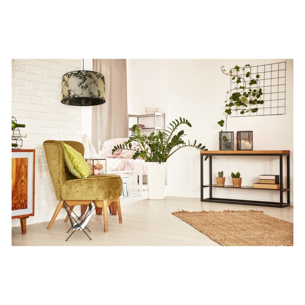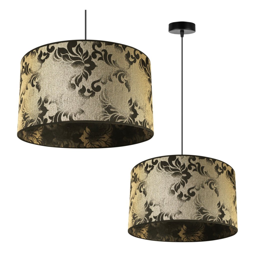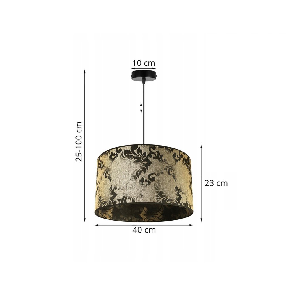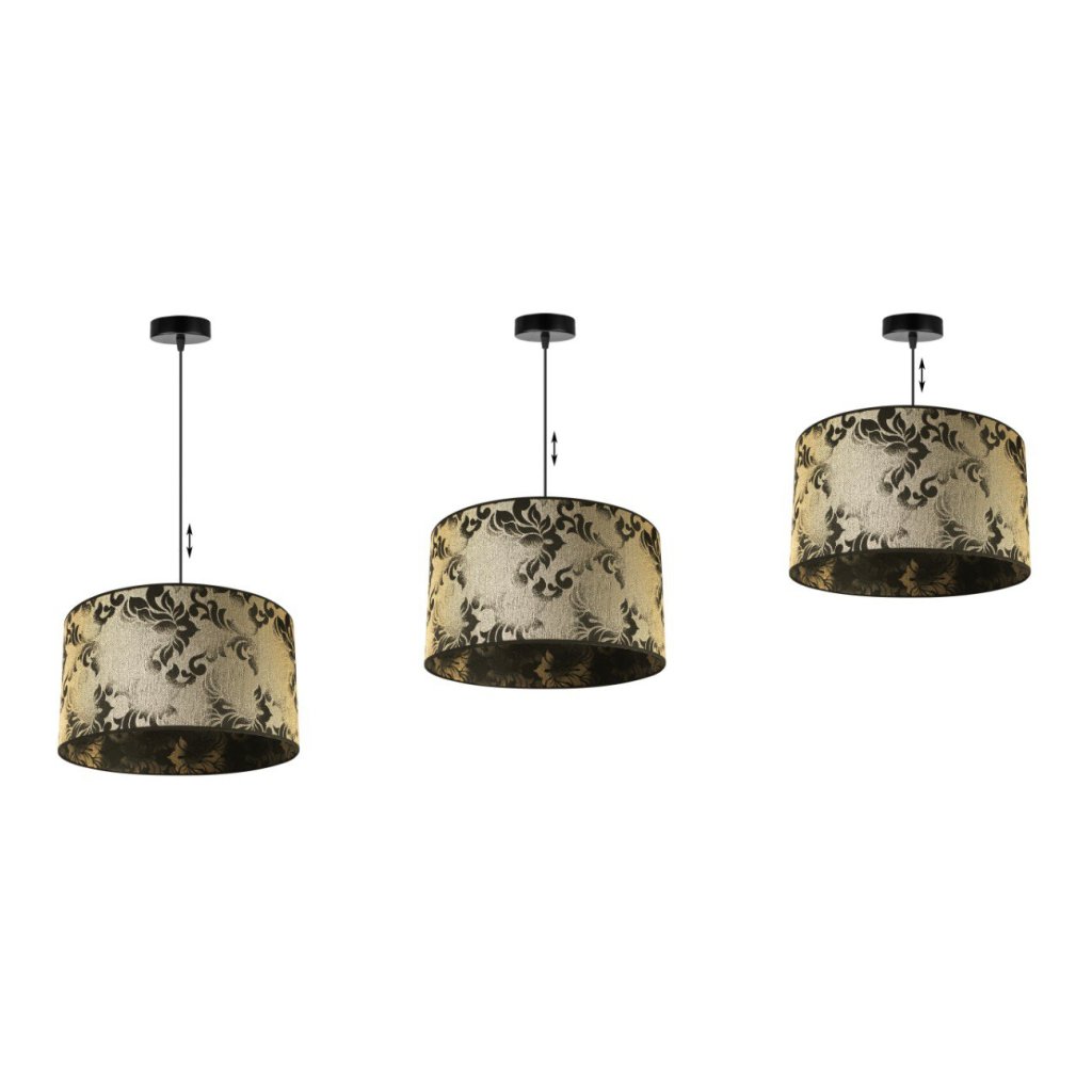 Závěsné svítidlo Werona 1, 1x černé/zlaté textilní stínítko se vzorem, (fi 40cm)