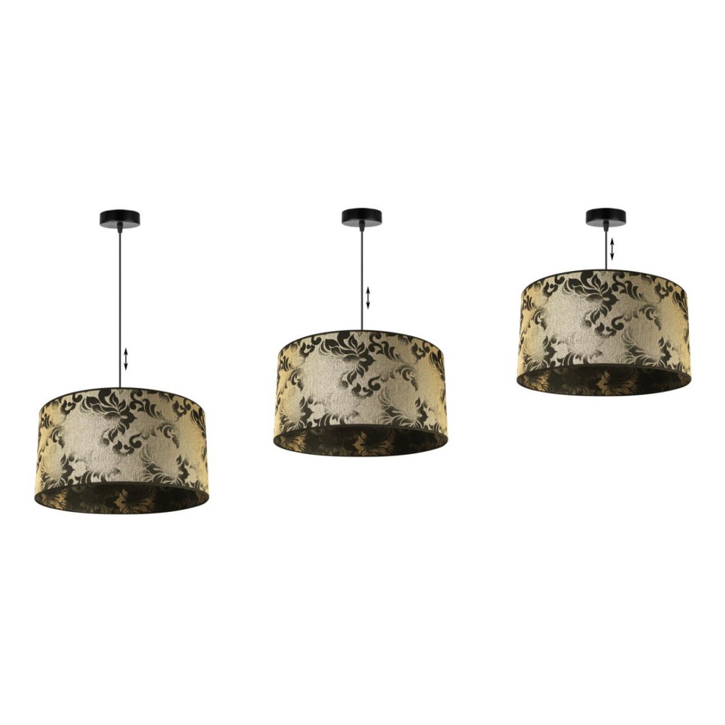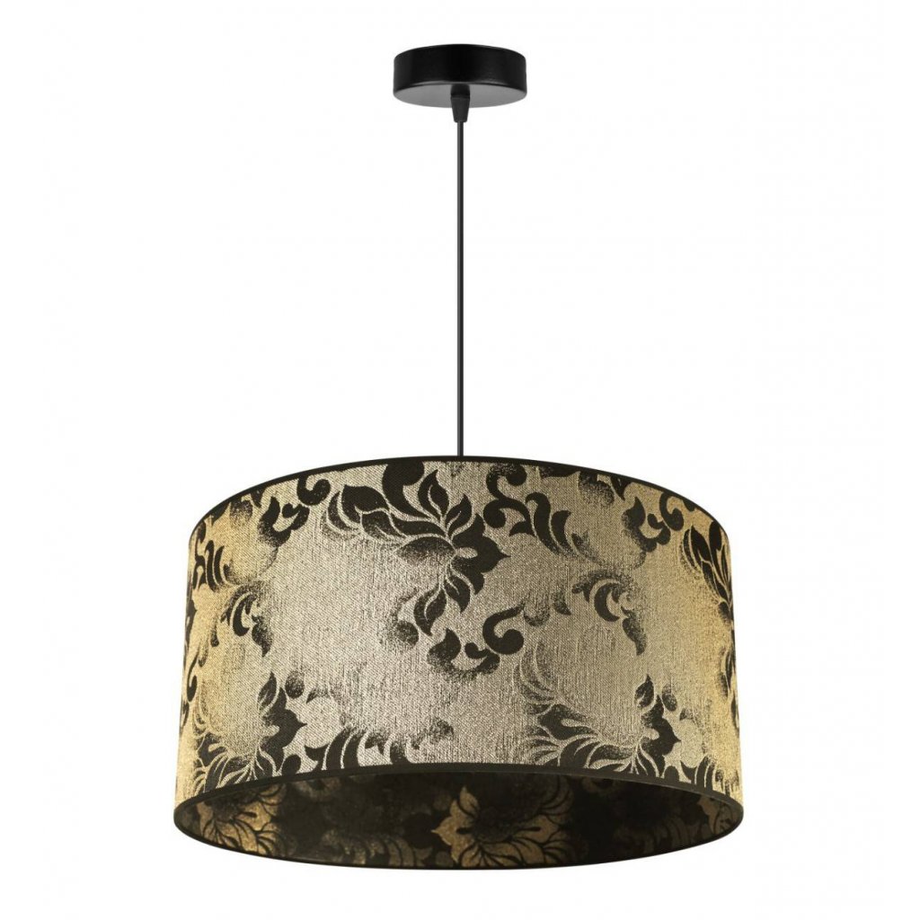 Závěsné svítidlo Werona 1, 1x černé/zlaté textilní stínítko se vzorem, (fi 45cm)