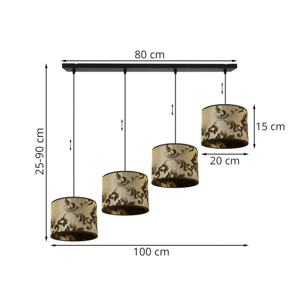 Závěsné svítidlo Werona 1, 4x černé textilní stínítko se vzorem