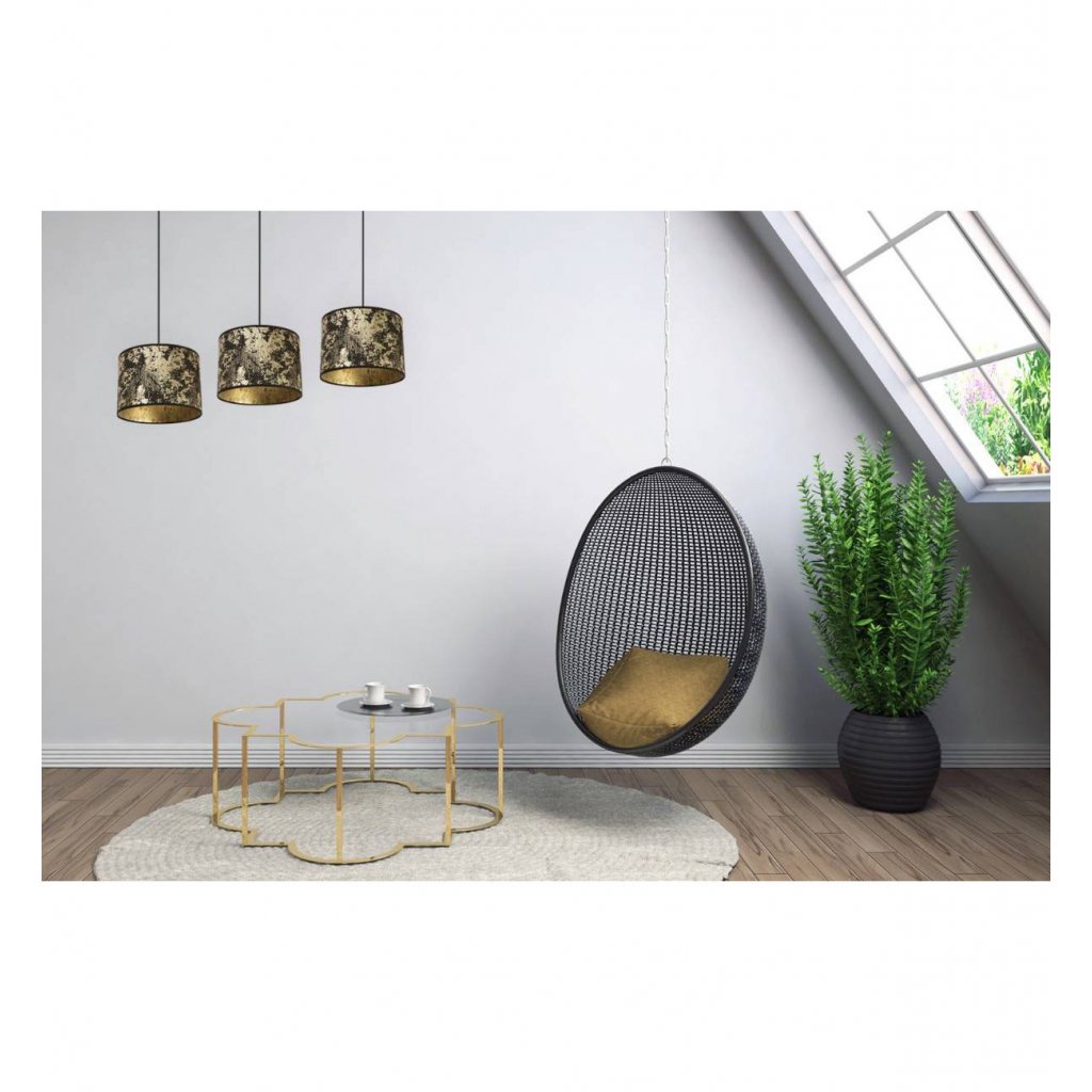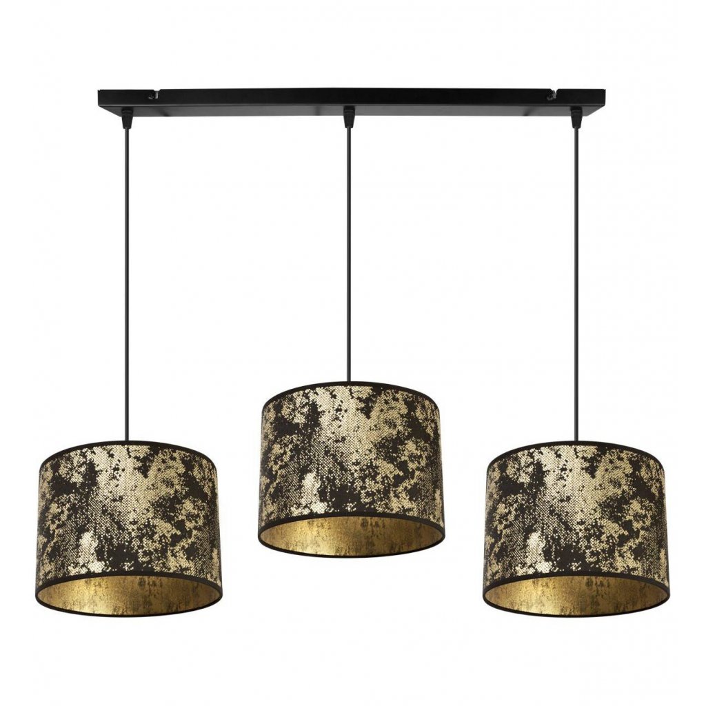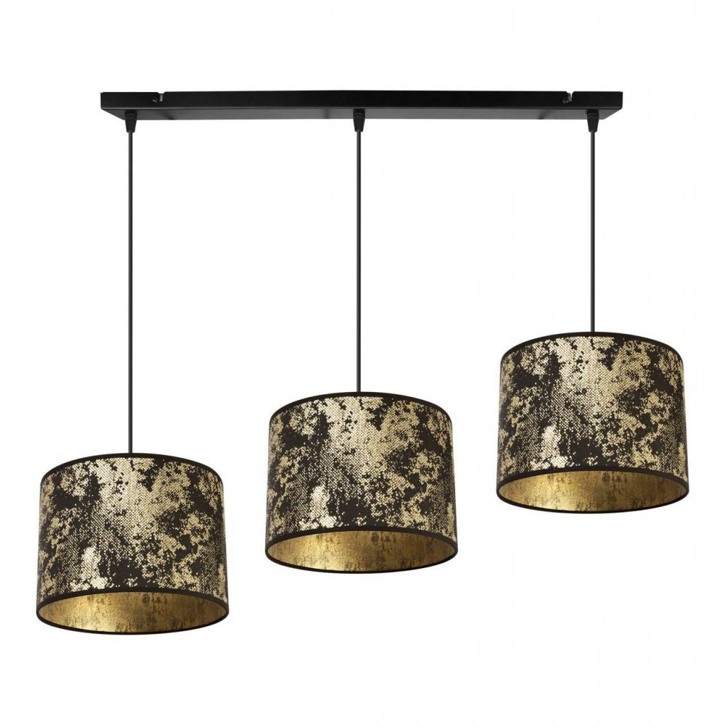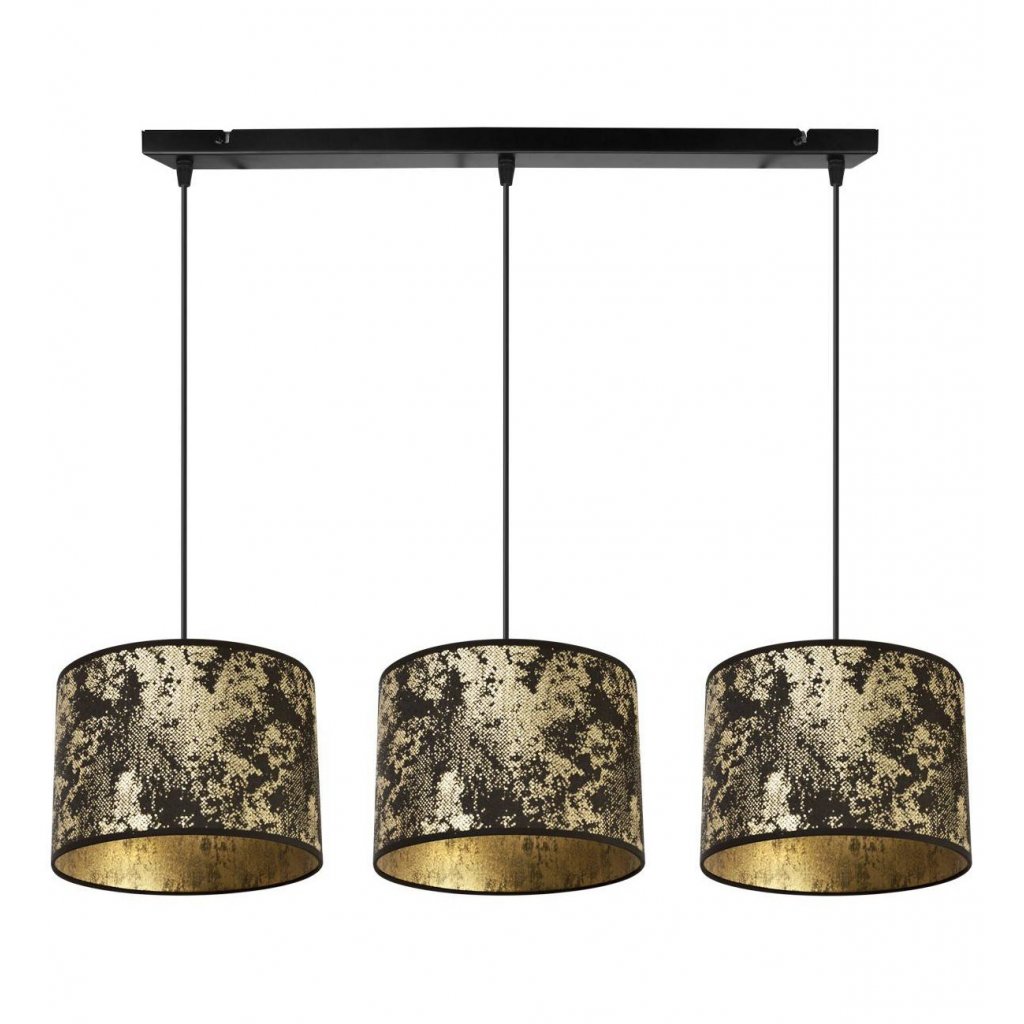 Závěsné svítidlo Werona 2, 3x černé/zlaté textilní stínítko, g