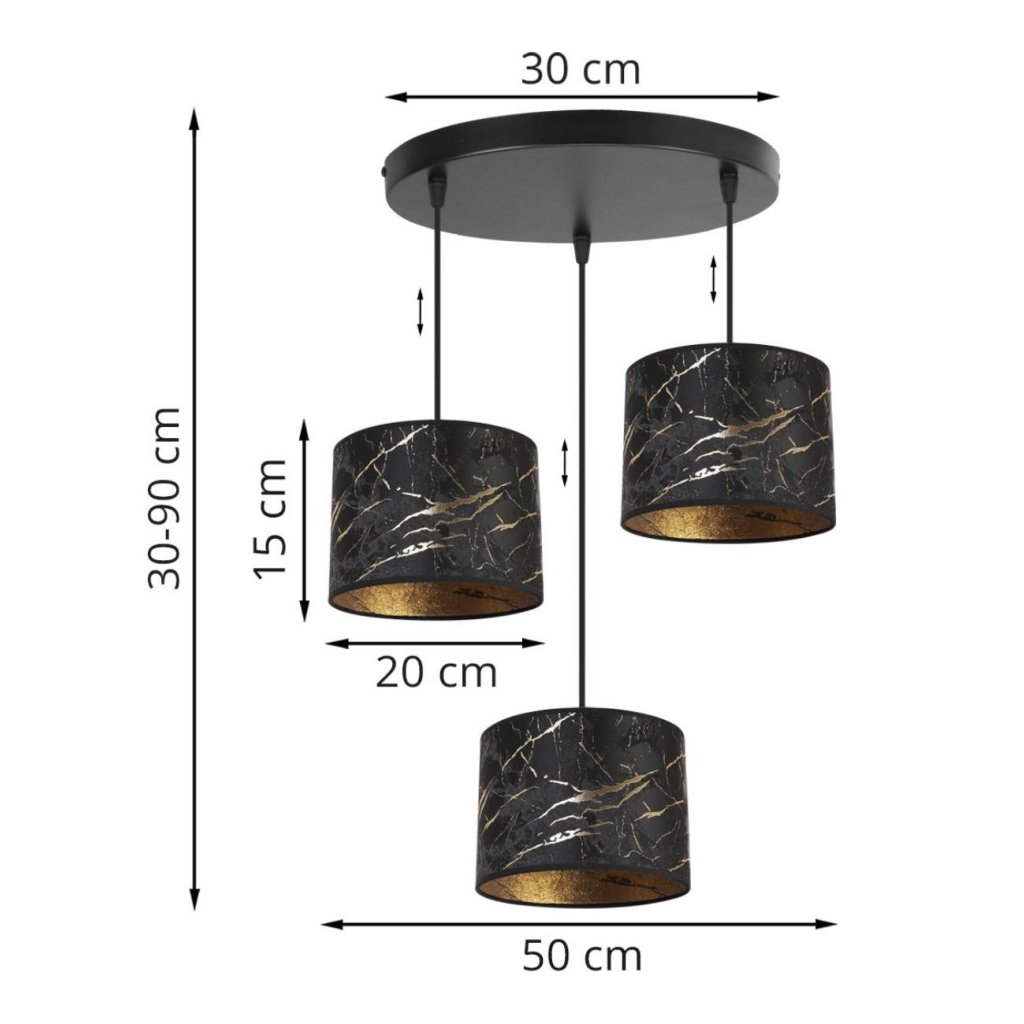 Závěsné svítidlo Werona 3, 3x černé textilní stínítko se vzorem, o, g