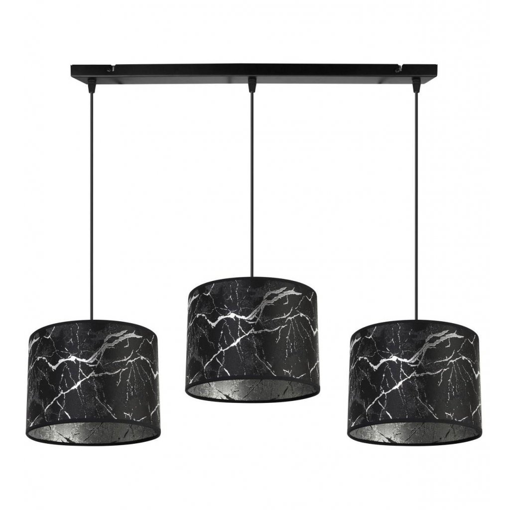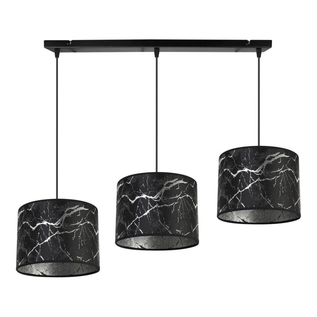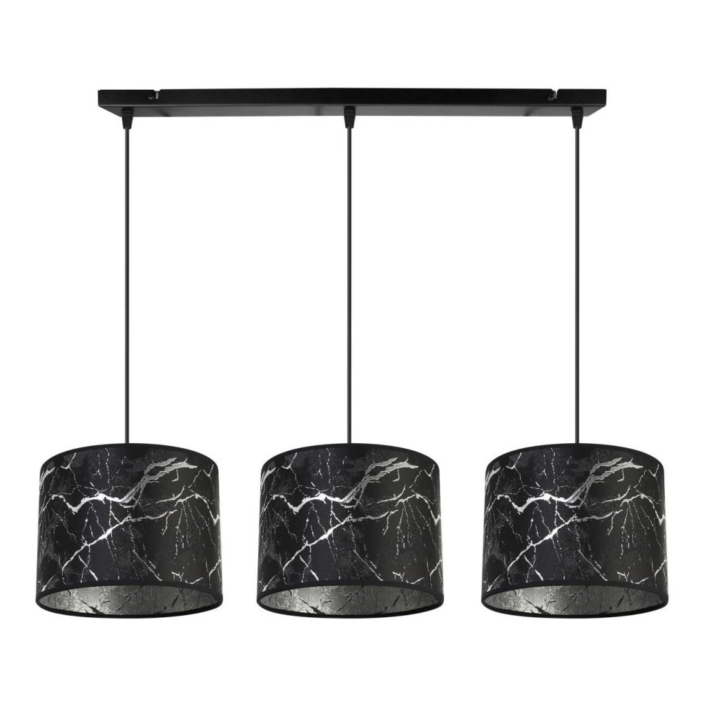 Závěsné svítidlo Werona 3, 3x černé textilní stínítko se vzorem, s