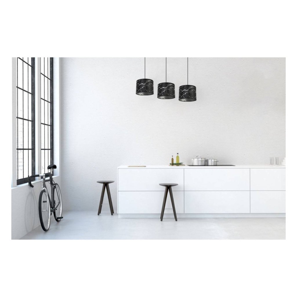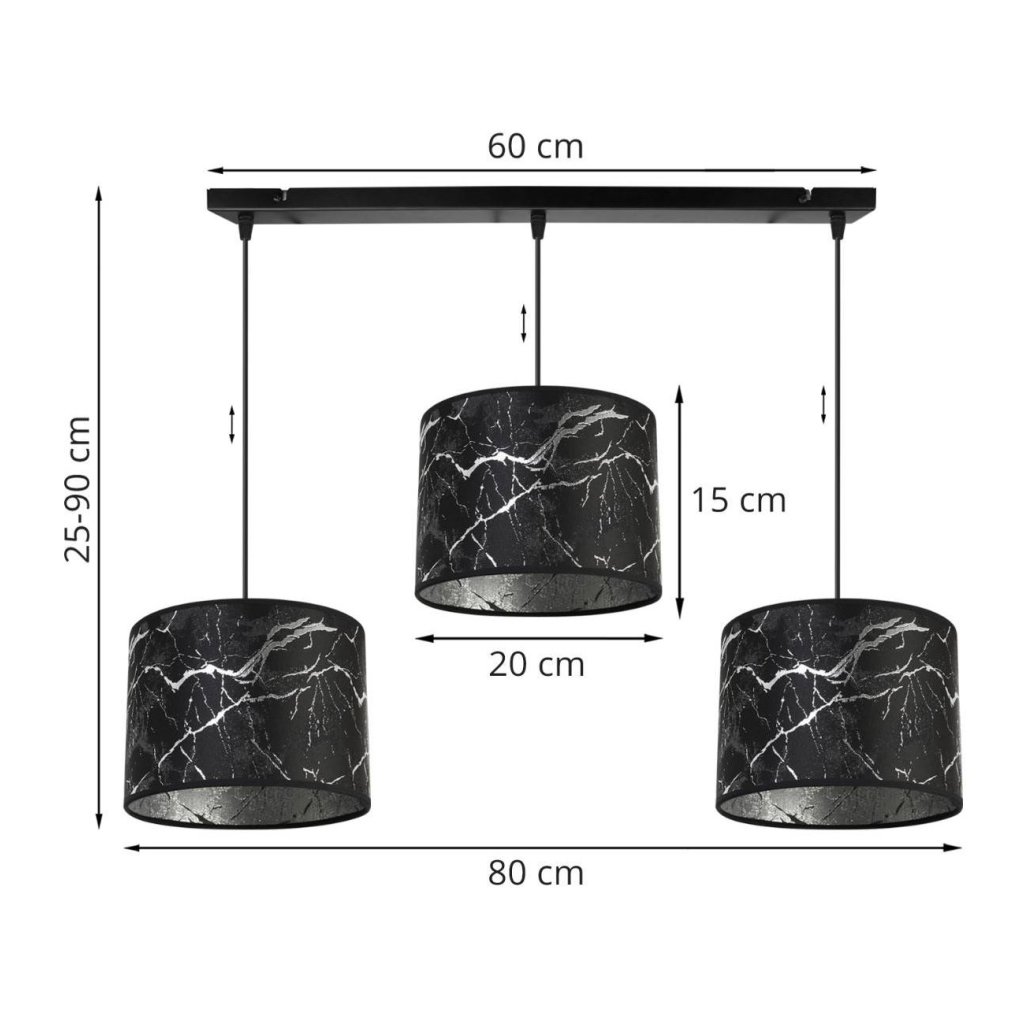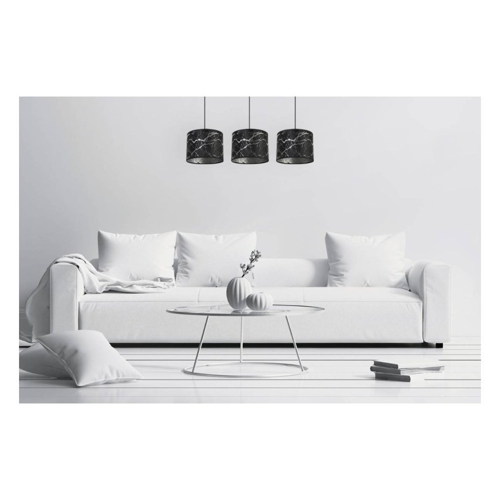 Závěsné svítidlo Werona 3, 3x černé textilní stínítko se vzorem, s