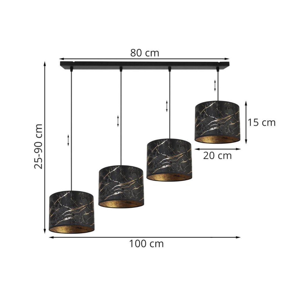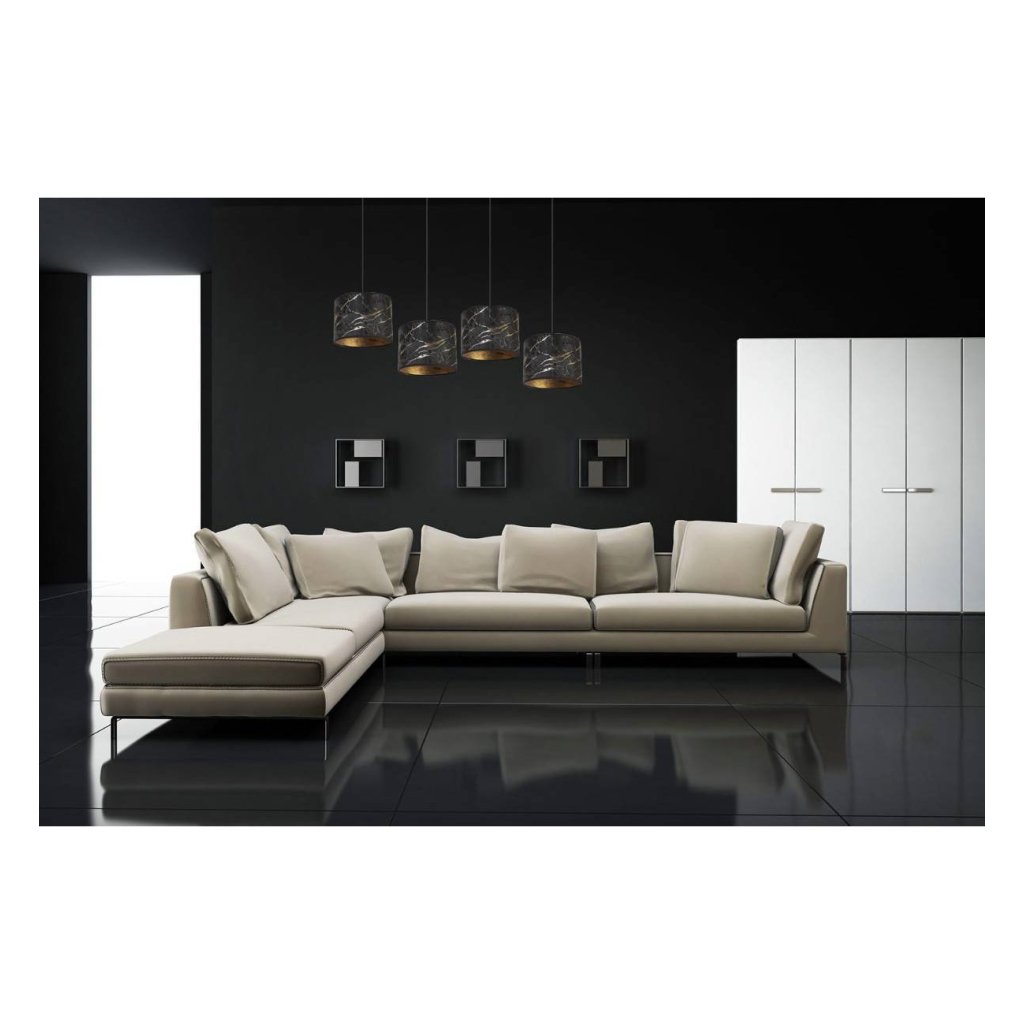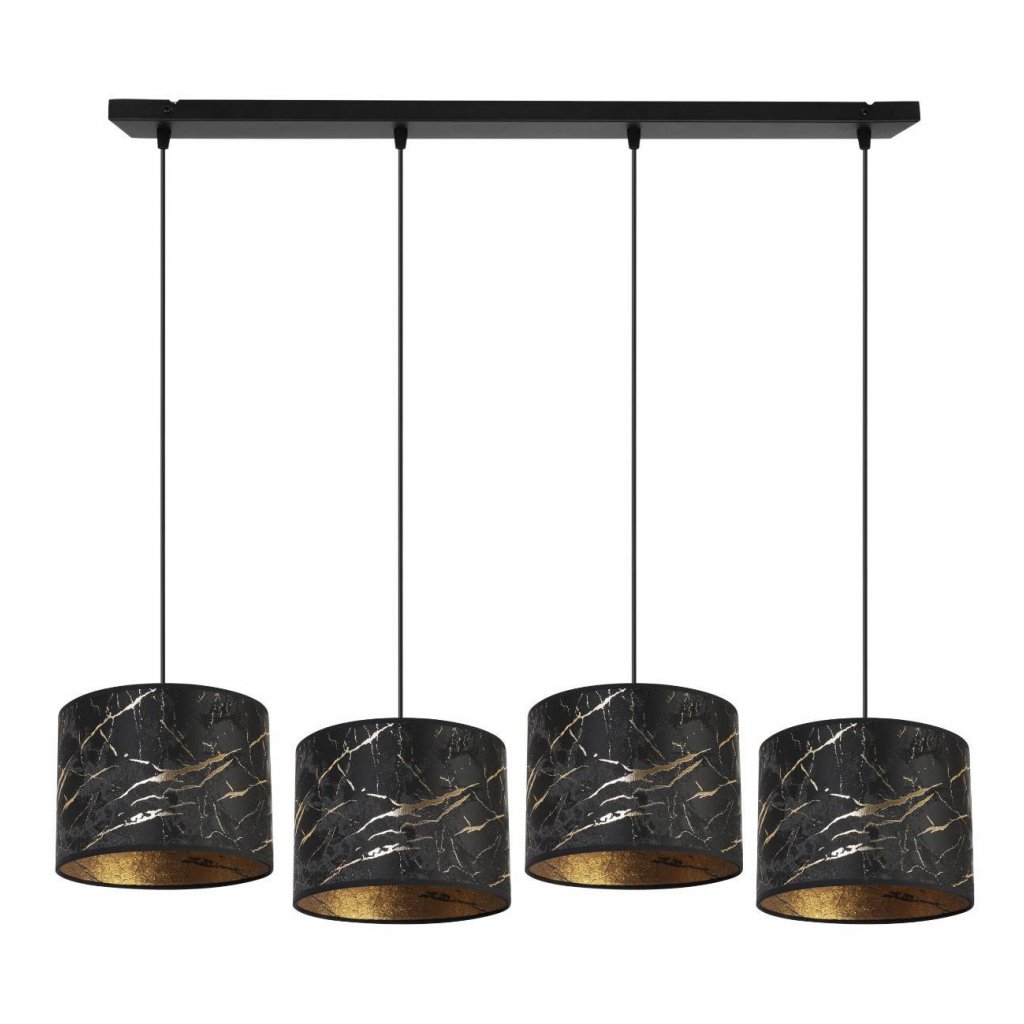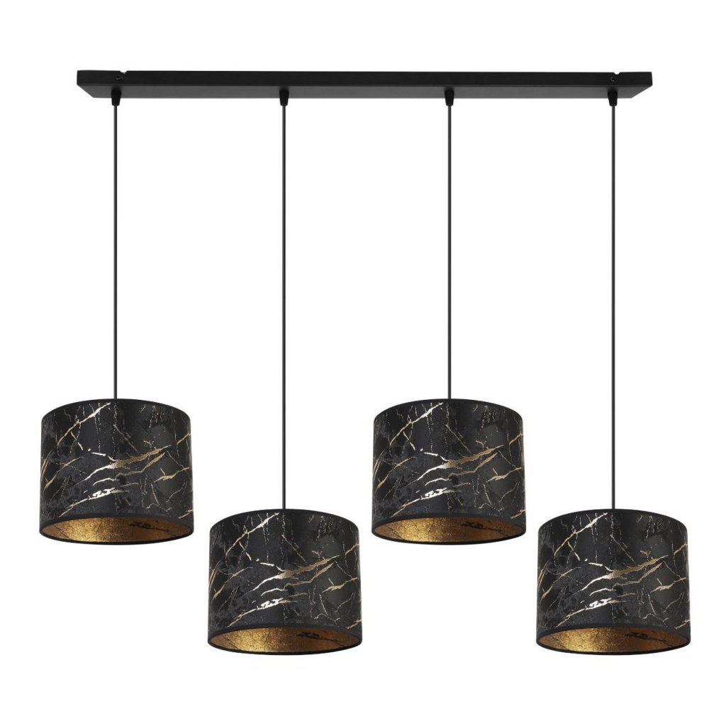 Závěsné svítidlo Werona 3, 4x černé textilní stínítko se vzorem, g