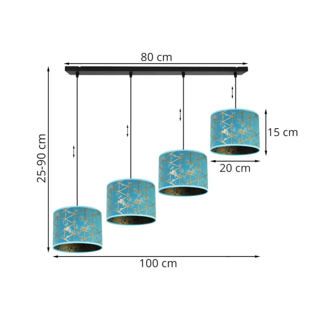 Závěsné svítidlo Werona 4, 4x modré textilní stínítko se vzorem, g