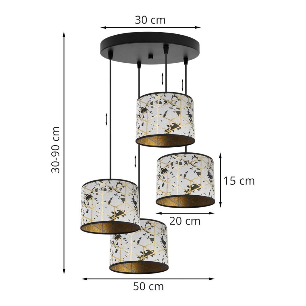Závěsné svítidlo Werona 5, 4x šedé textilní stínítko se vzorem, o, g