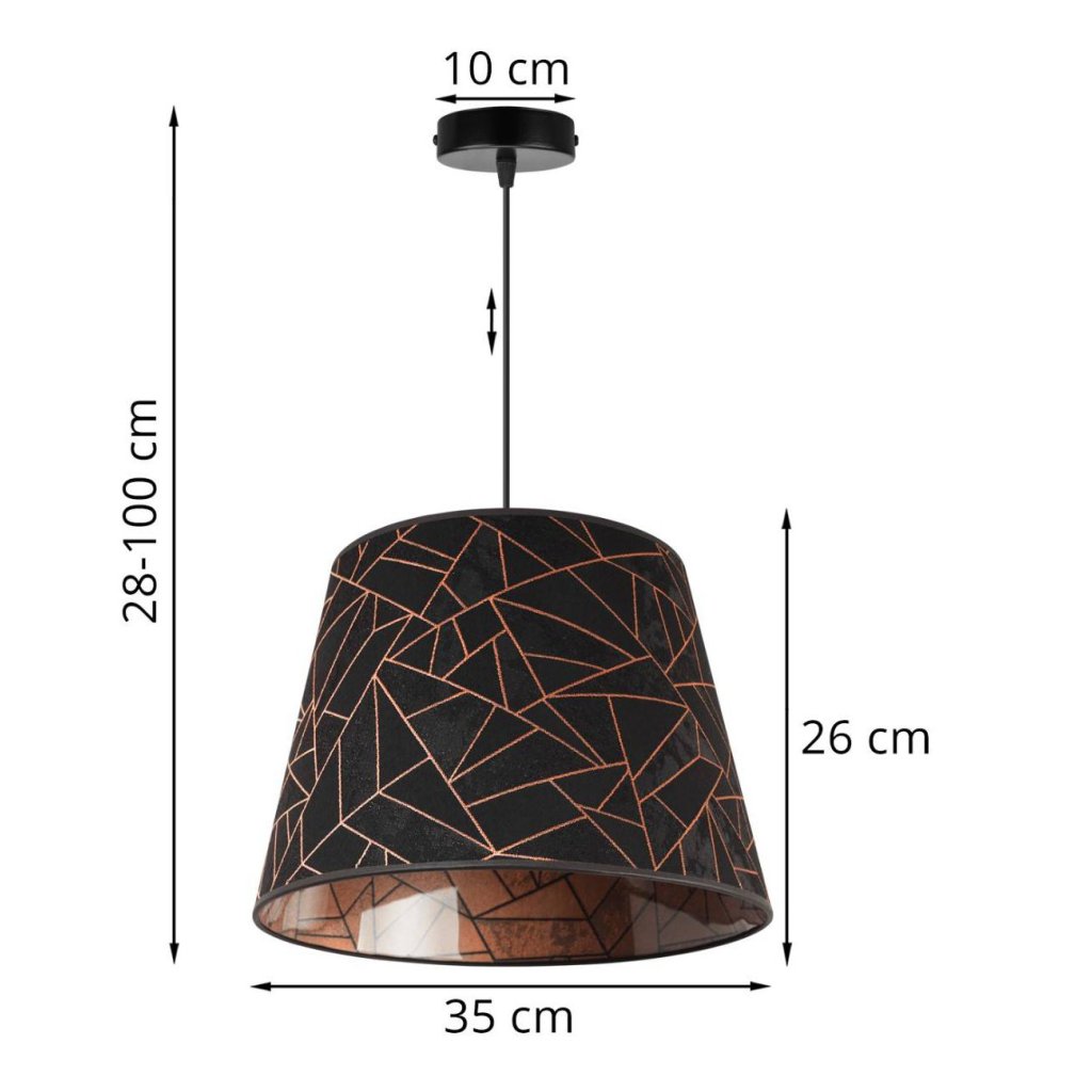 Závěsné svítidlo Werona 6, 1x černé textilní stínítko se vzorem, c, s