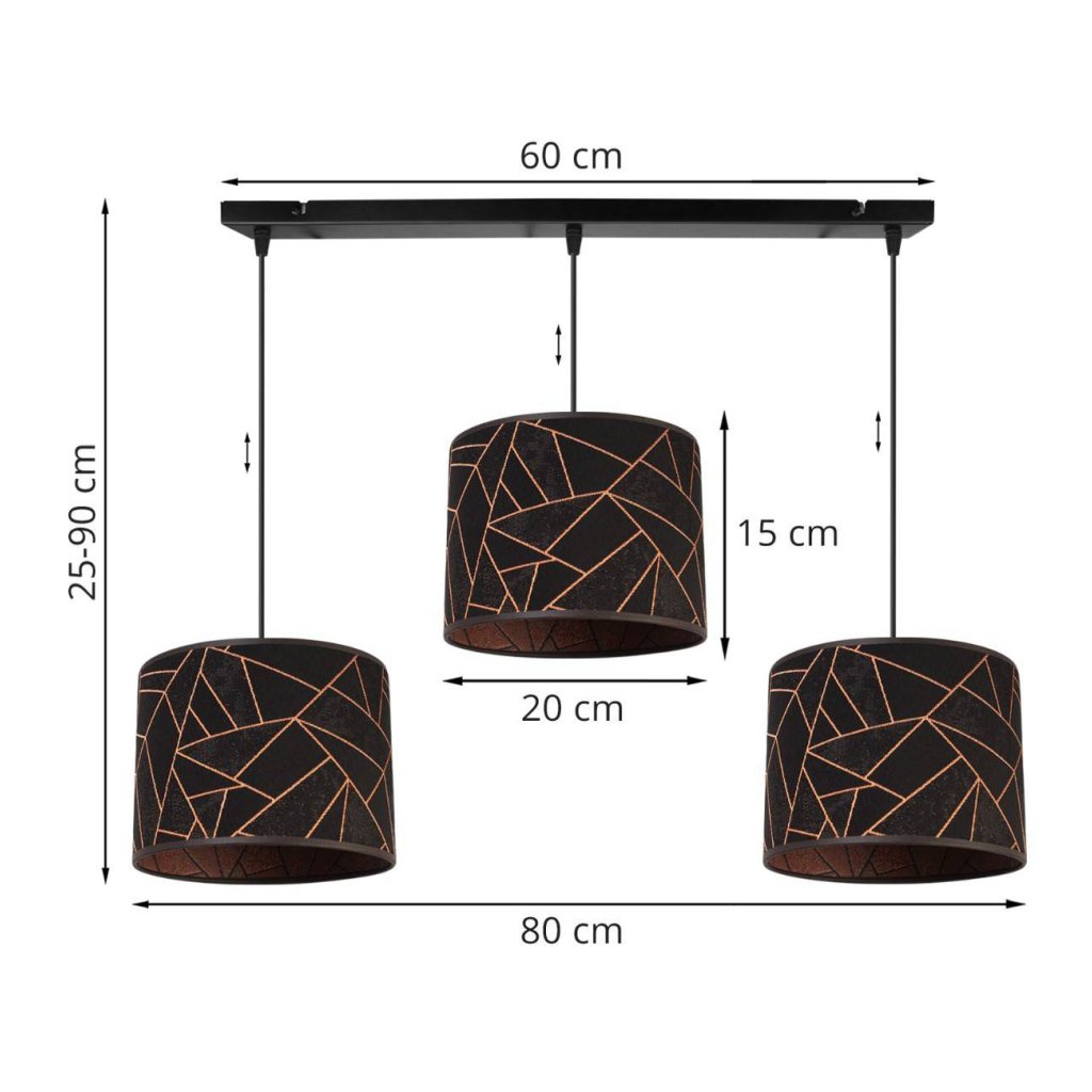 Závěsné svítidlo Werona 6, 3x černé textilní stínítko se vzorem, c