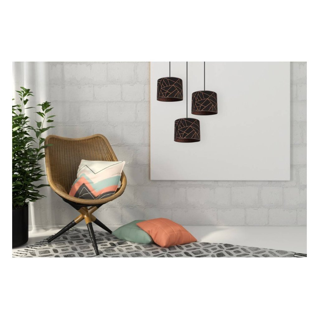 Závěsné svítidlo Werona 6, 3x černé textilní stínítko se vzorem, o, c