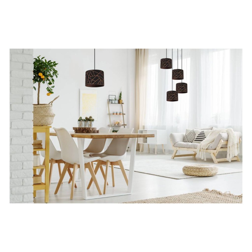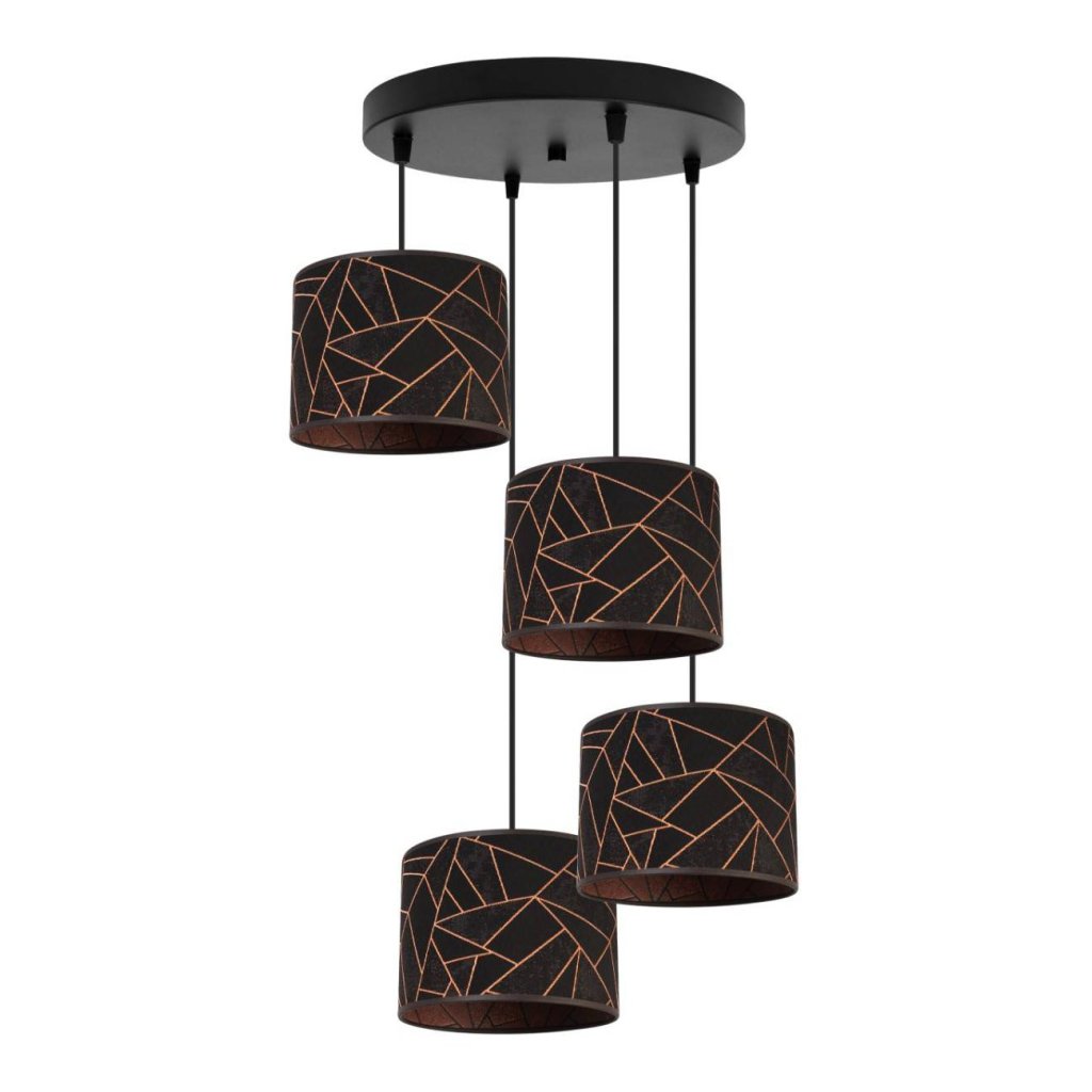 Závěsné svítidlo Werona 6, 4x černé textilní stínítko se vzorem, o, c