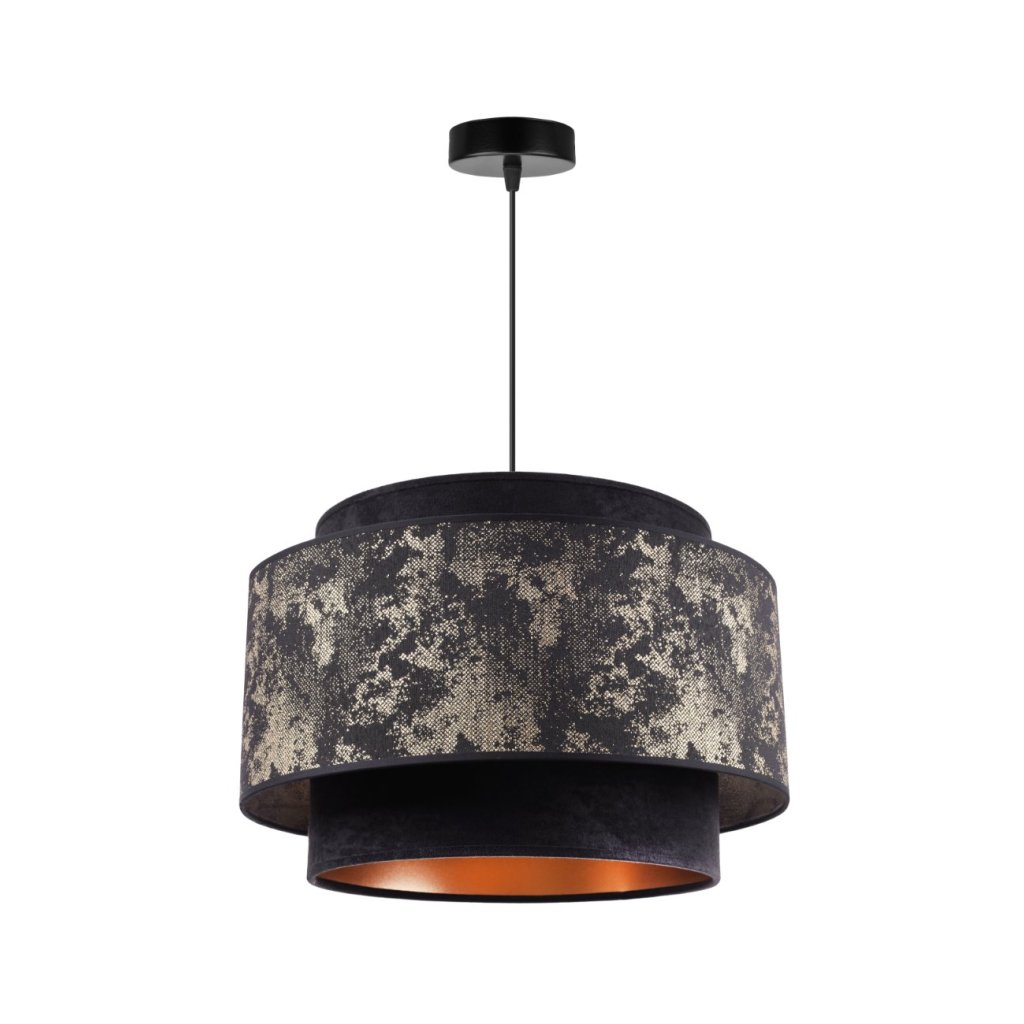 Závěsné svítidlo Werona duo 2, 1x černé/zlaté textilní stínítko se vzorem, g