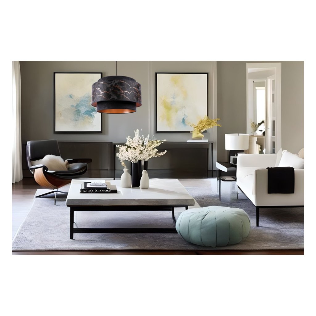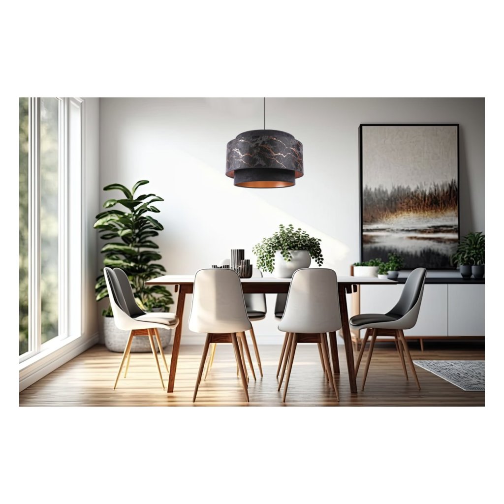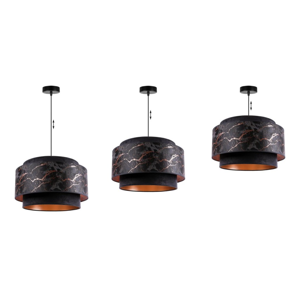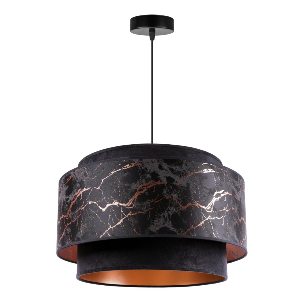 Závěsné svítidlo Werona duo 3, 1x černé textilní stínítko se vzorem, c