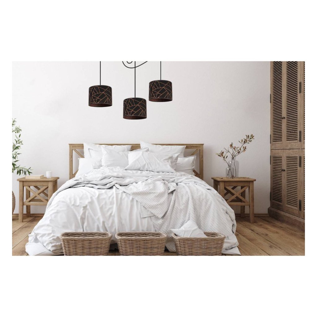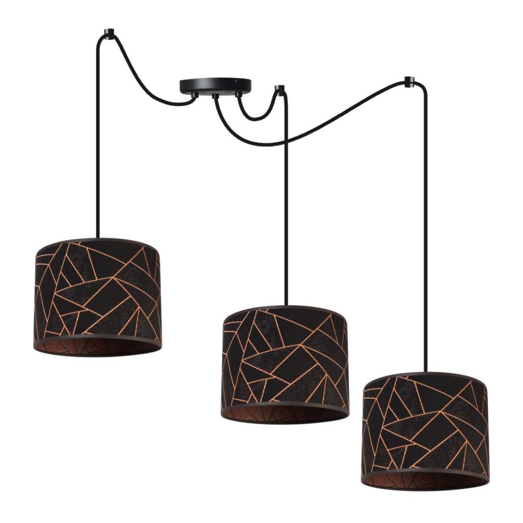 Závěsné svítidlo Werona Spider, 3x černé textilní stínítko se vzorem, c