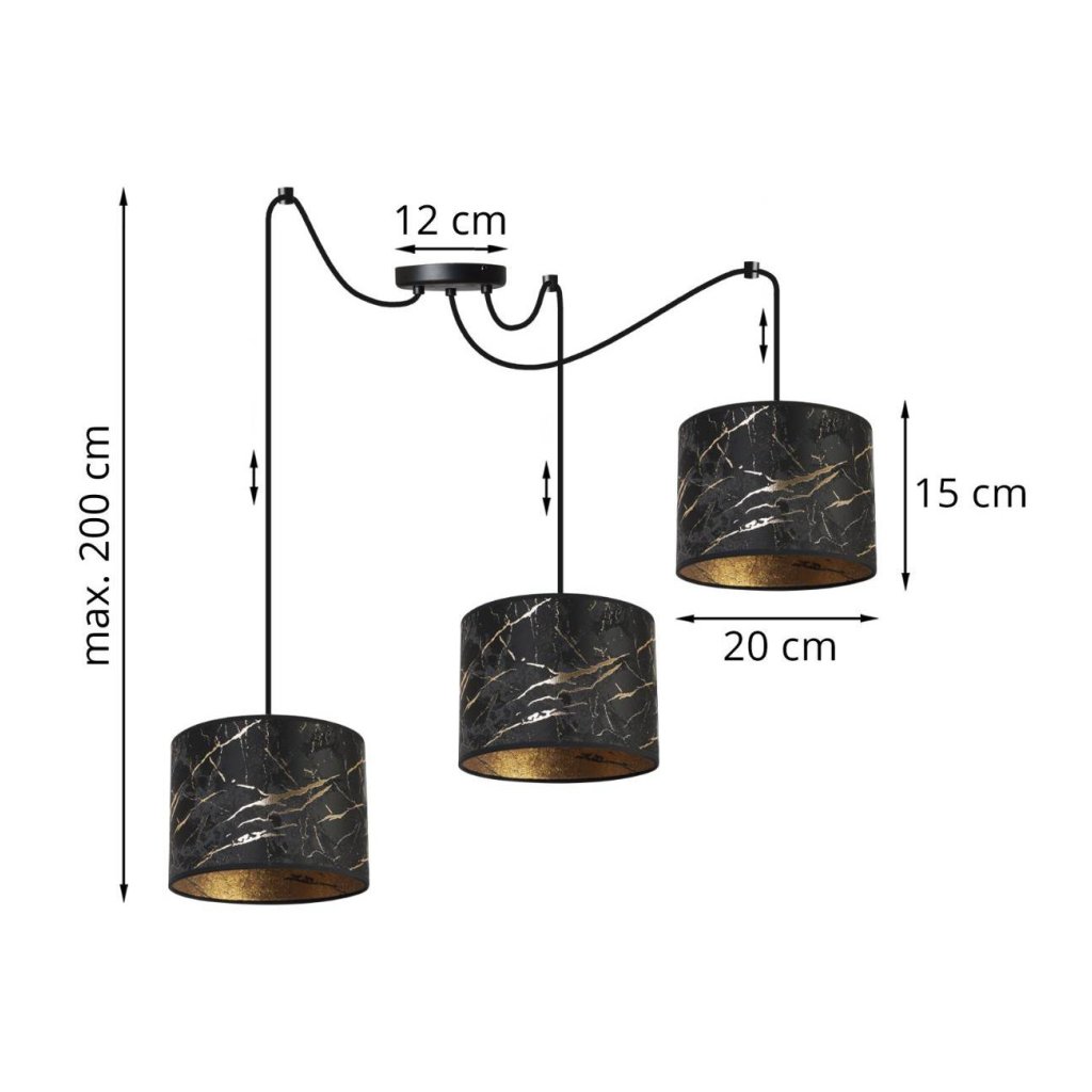 Závěsné svítidlo Werona Spider, 3x černé textilní stínítko se vzorem, g