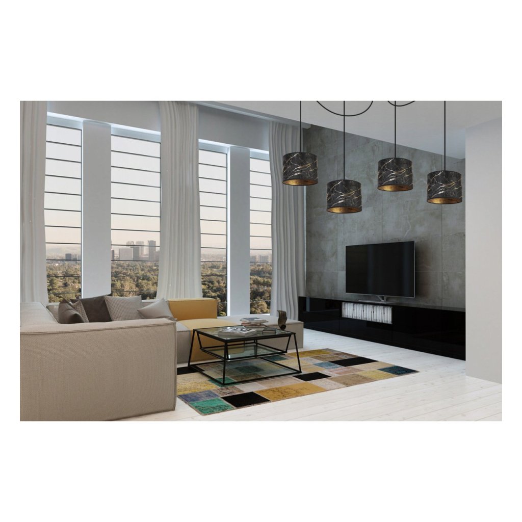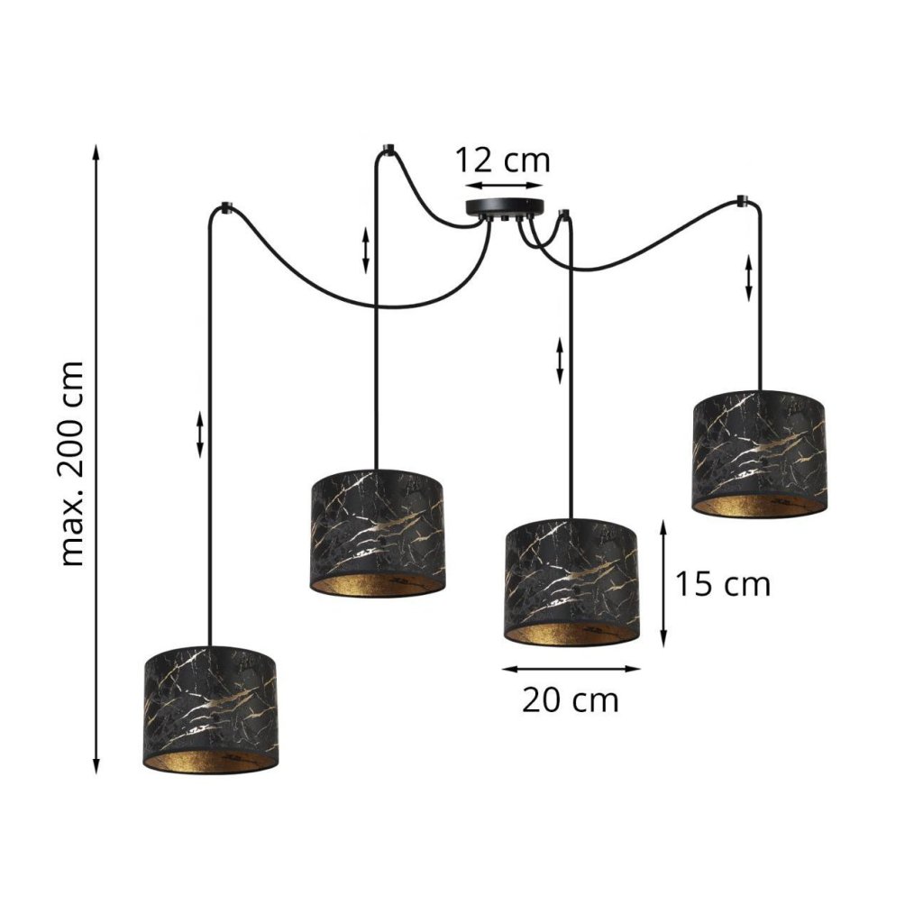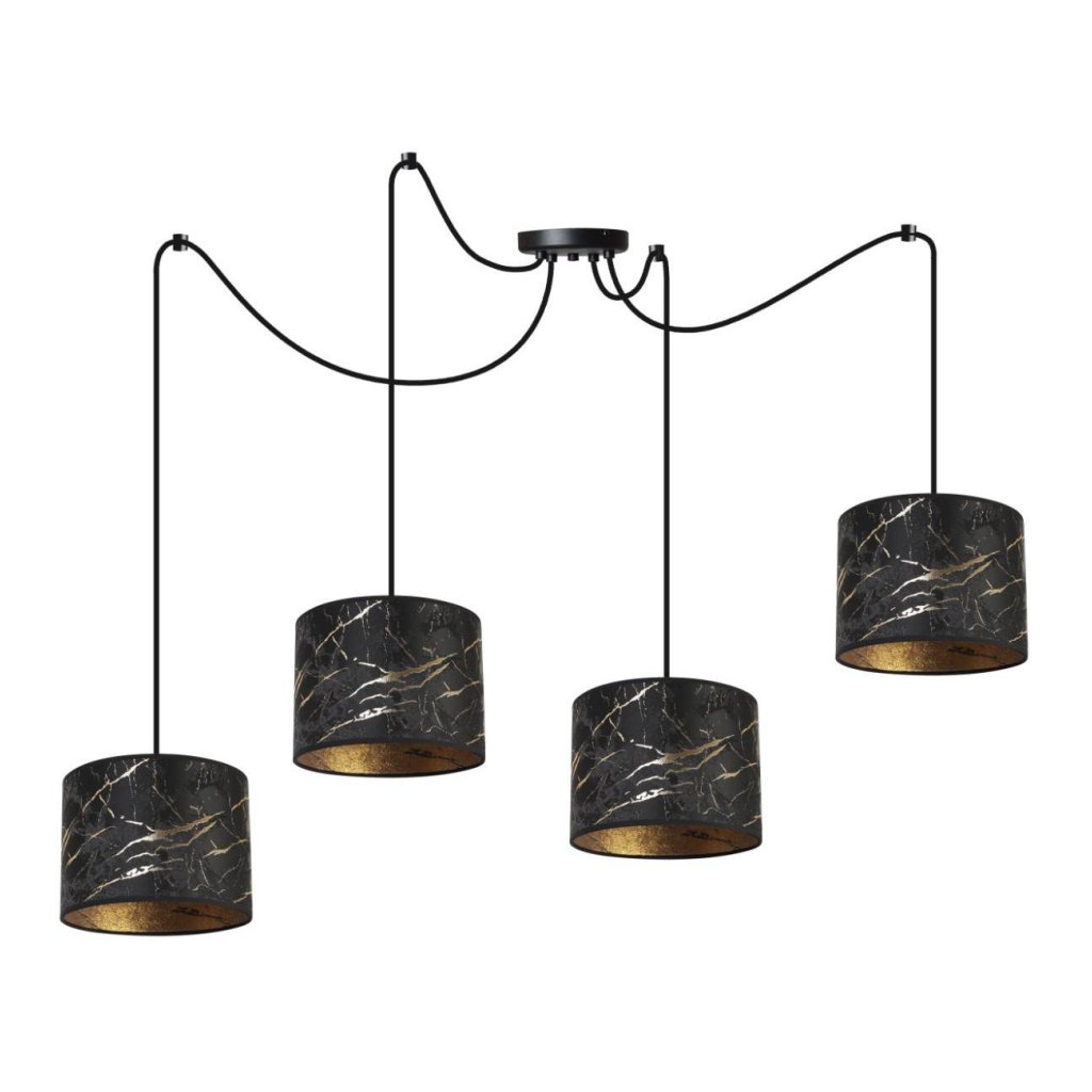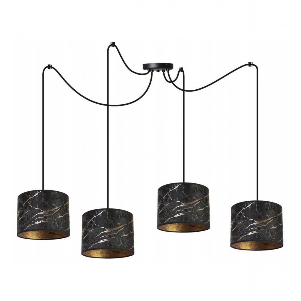 Závěsné svítidlo Werona Spider, 4x černé textilní stínítko se vzorem, g