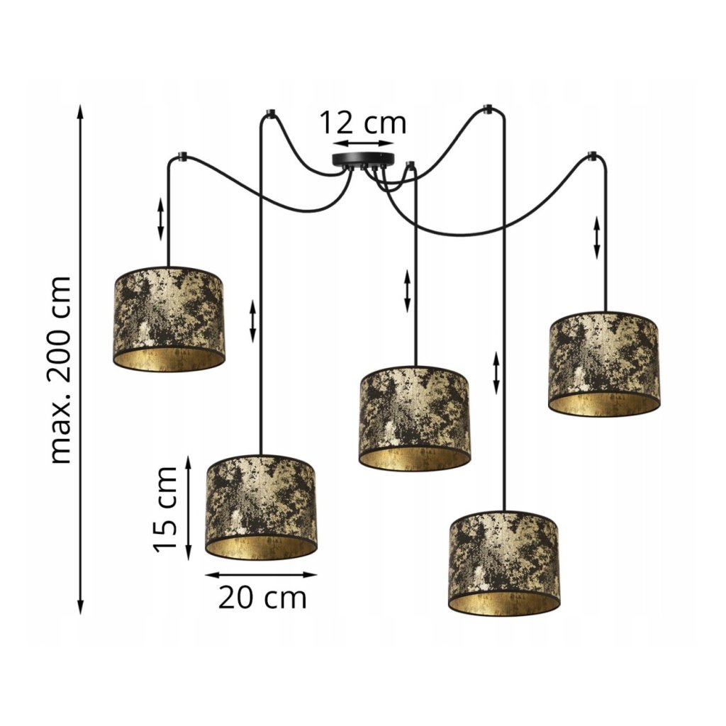 Závěsné svítidlo Werona Spider, 5x černé textilní stínítko, g
