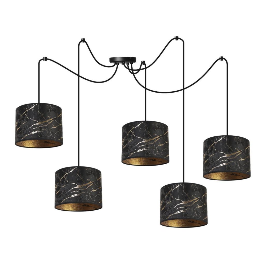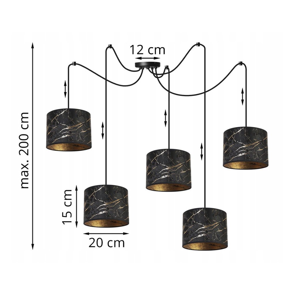 Závěsné svítidlo Werona Spider, 5x černé textilní stínítko se vzorem, g
