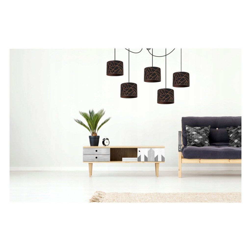 Závěsné svítidlo Werona Spider, 5x černé textilní stínítko se vzorem, g