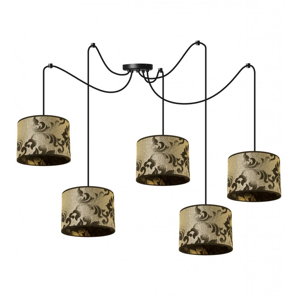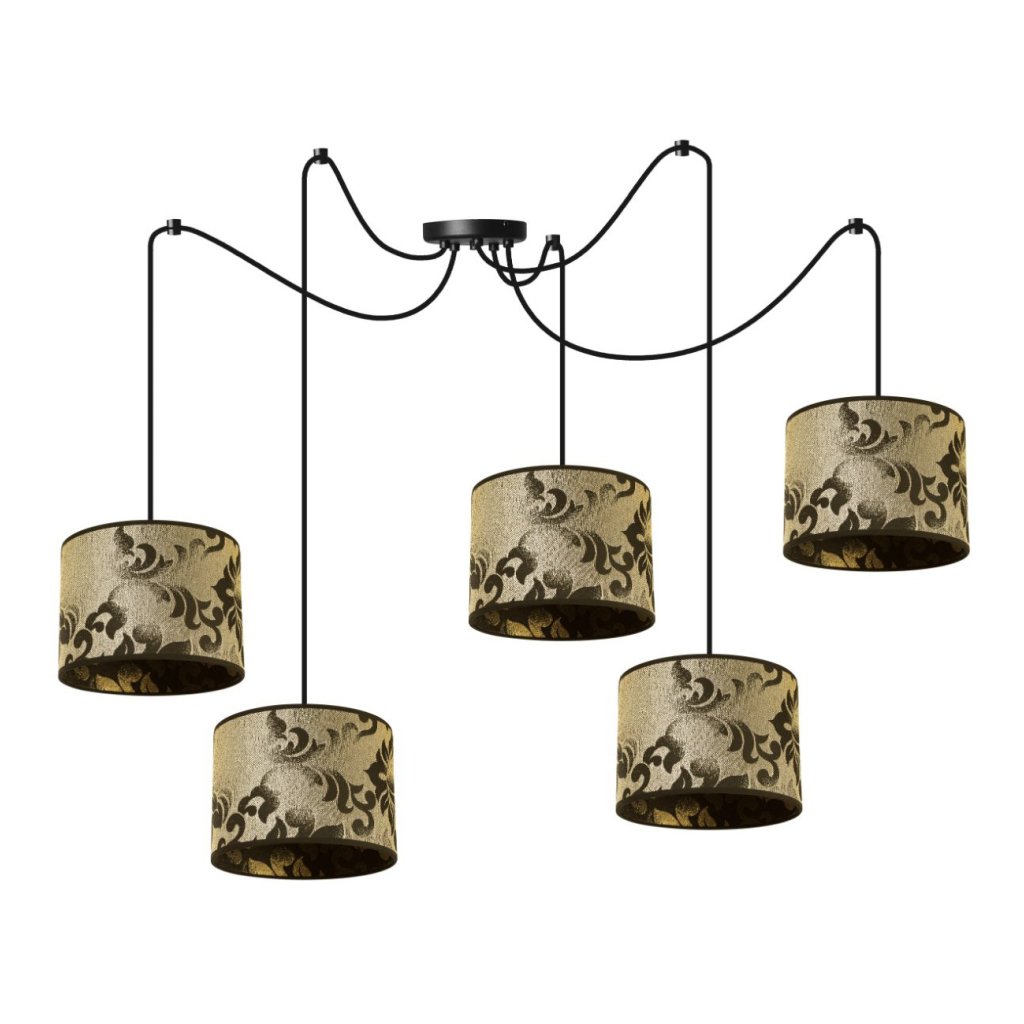 Závěsné svítidlo Werona Spider 1, 5x černé/zlaté textilní stínítko se vzorem