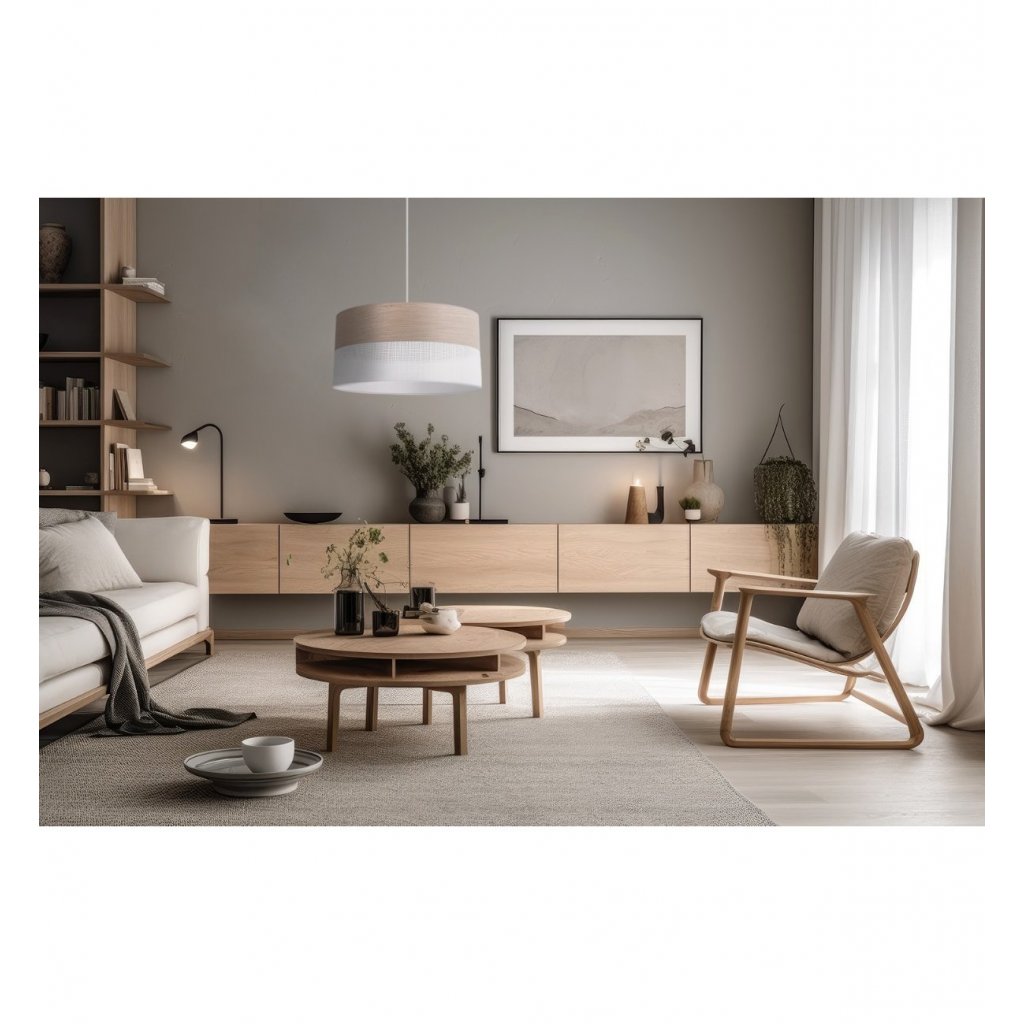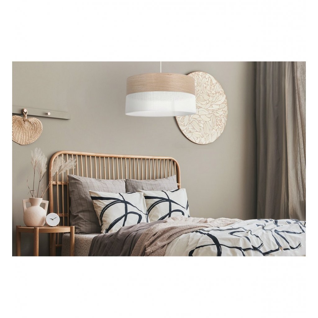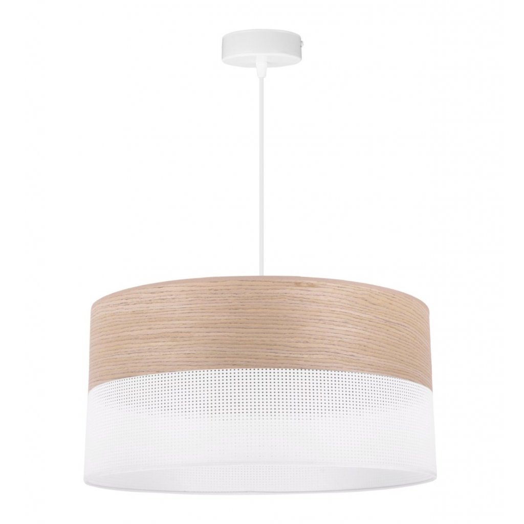 Závěsné svítidlo Wood, 1x béžová dubová dýha/bílé plastové stínítko, (fi 44cm)