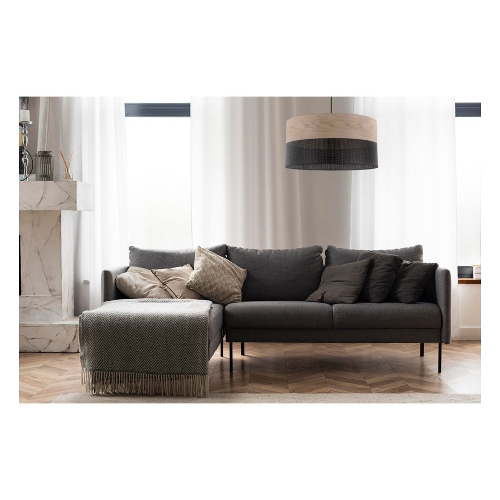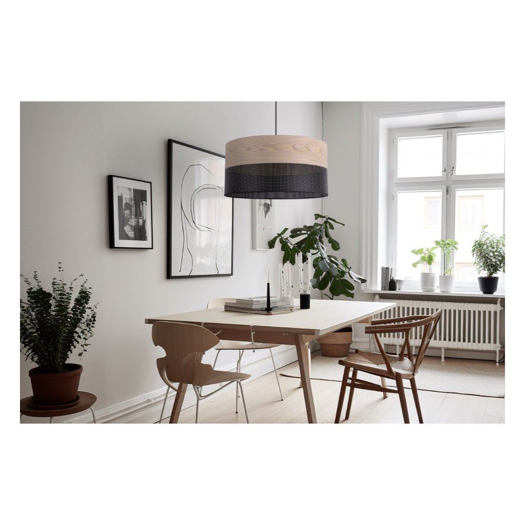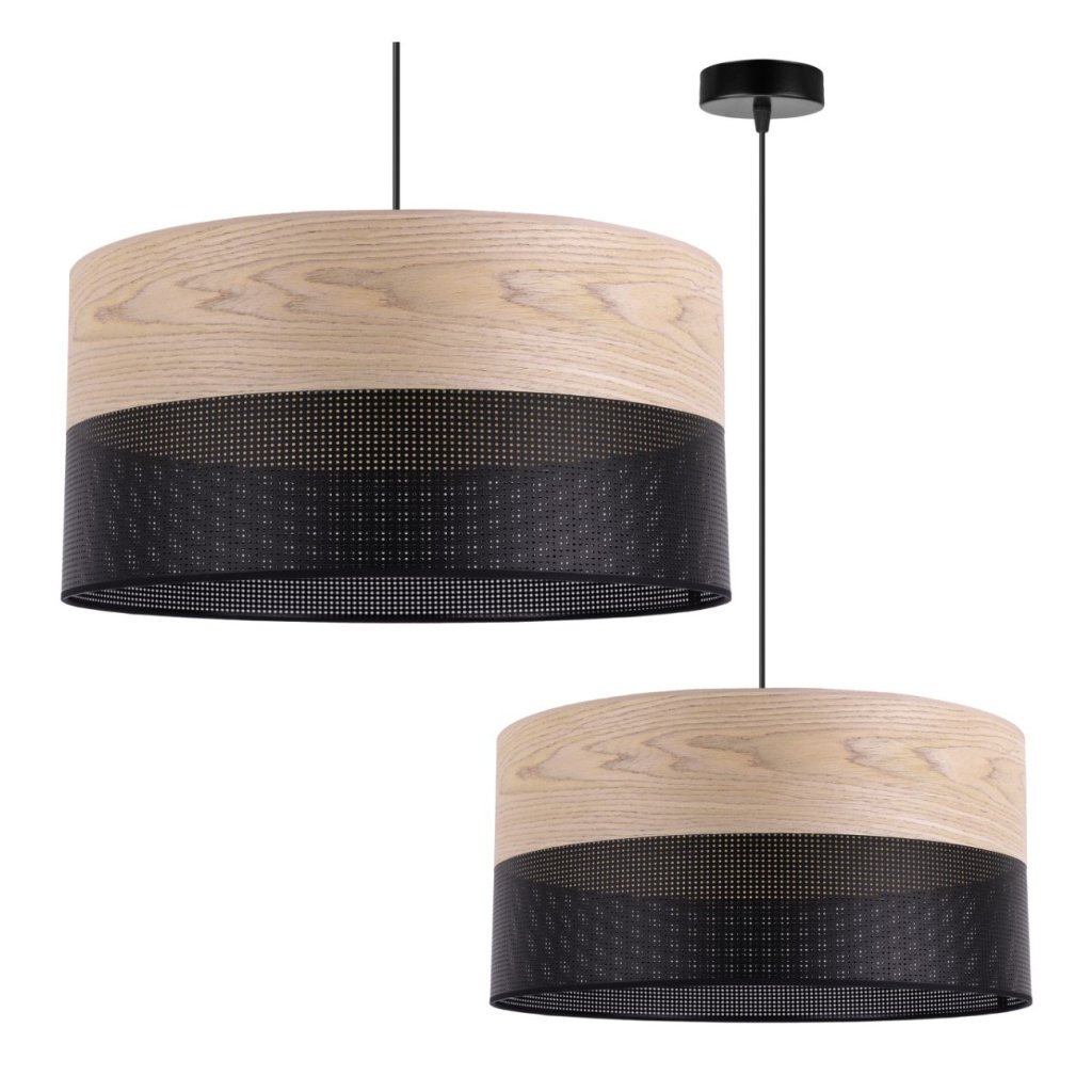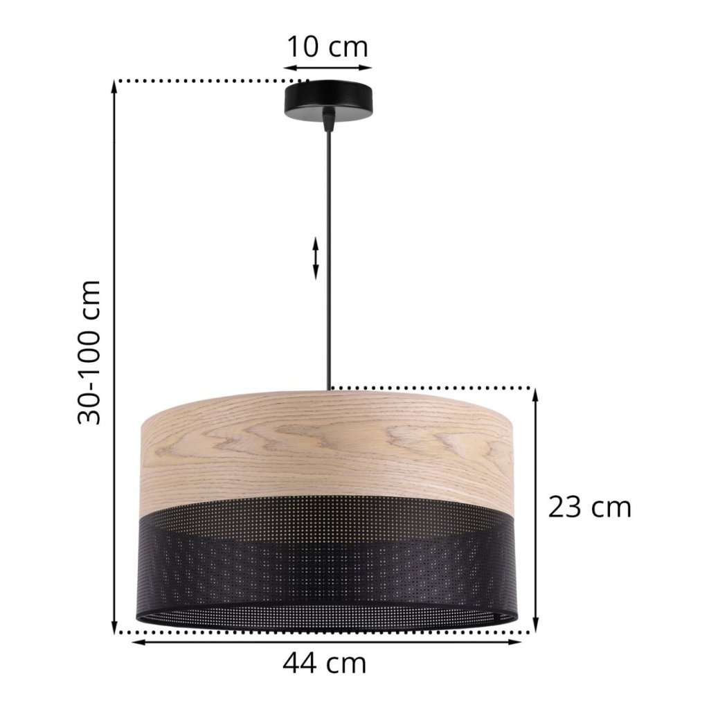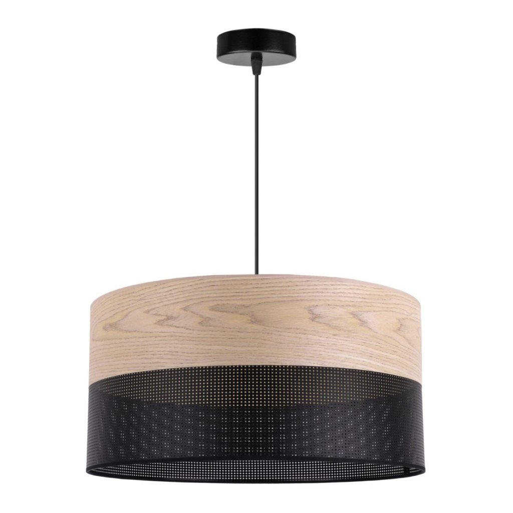 Závěsné svítidlo Wood, 1x béžová dubová dýha/černé plastové stínítko, (fi 44cm)