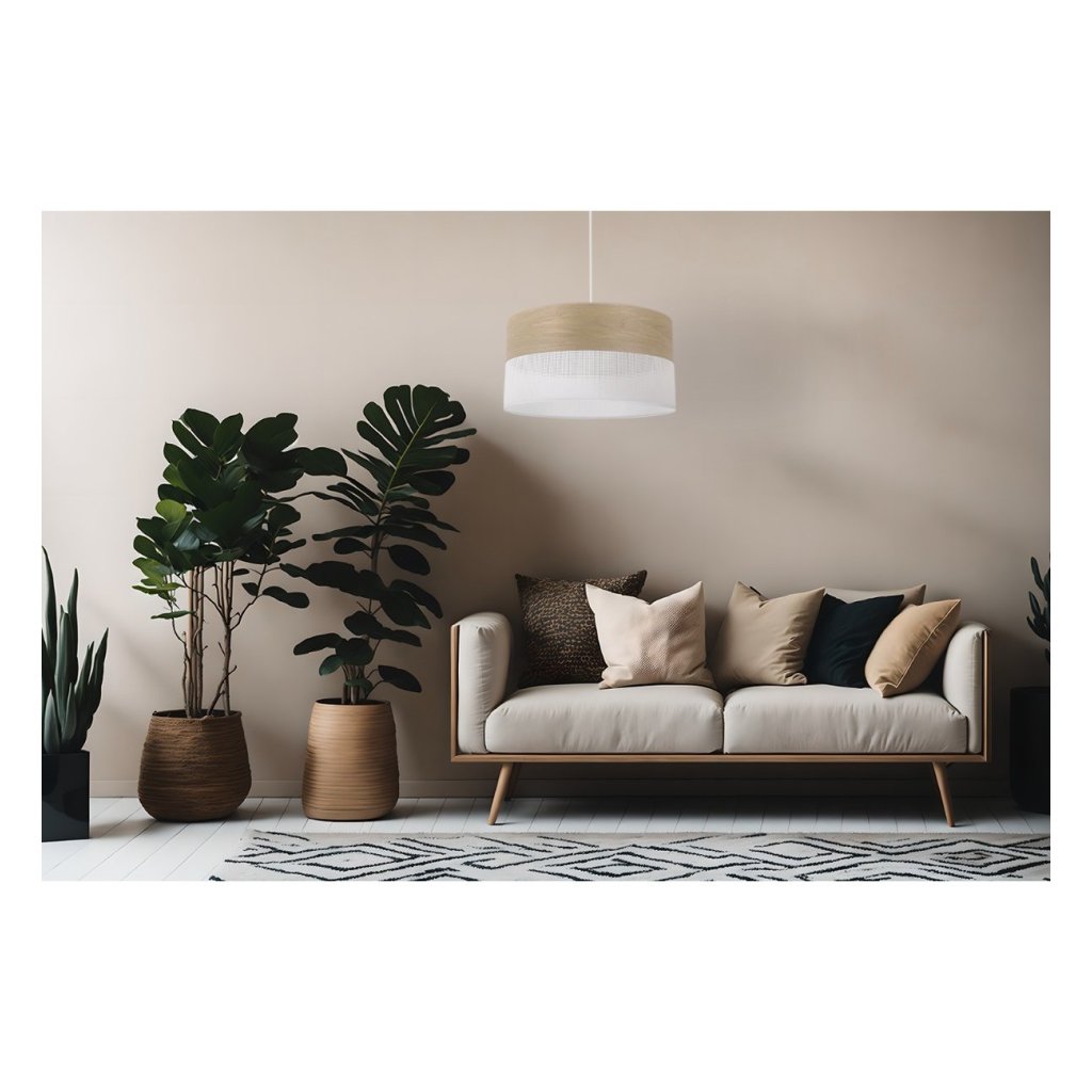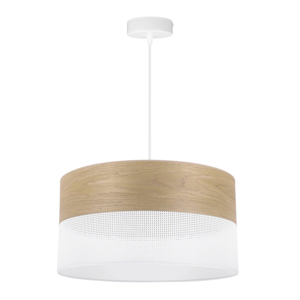 Závěsné svítidlo Wood, 1x dýha zlatý dub/bílé plastové stínítko, (fi 40cm)