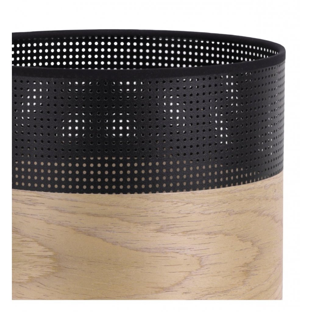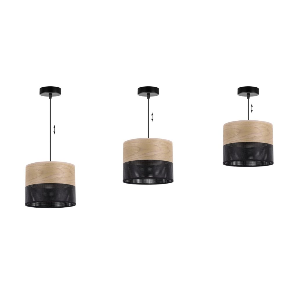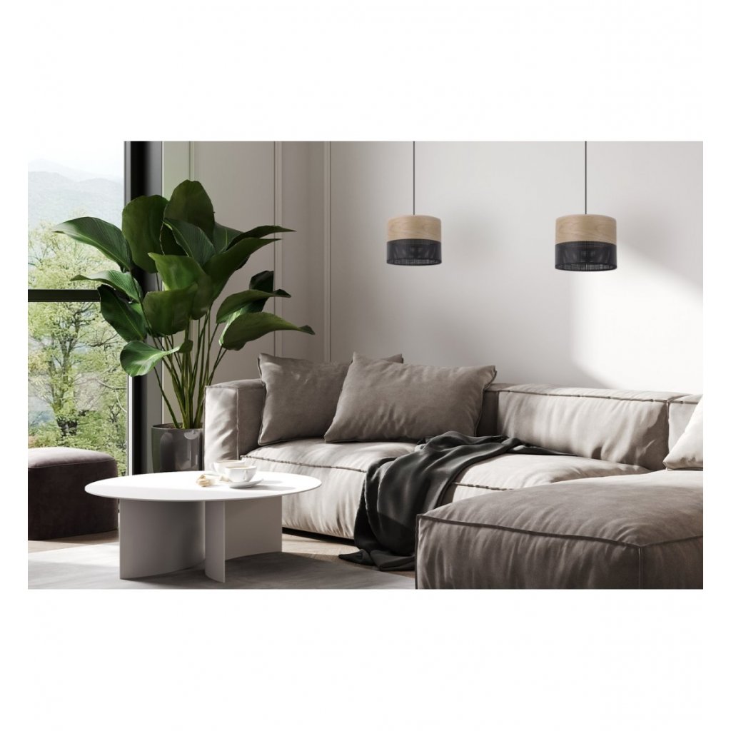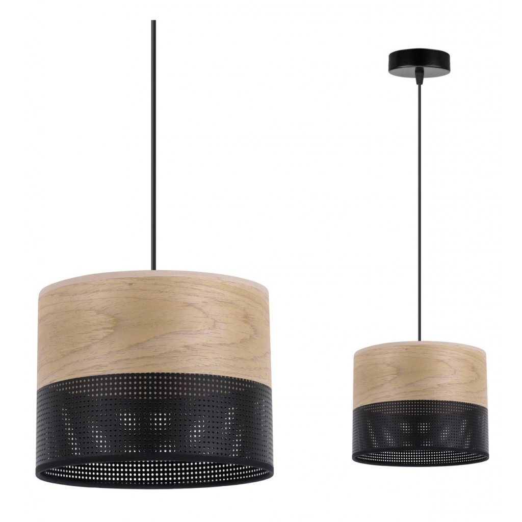 Závěsné svítidlo Wood, 1x dýha zlatý dub/černé plastové stínítko, (fi 20cm)