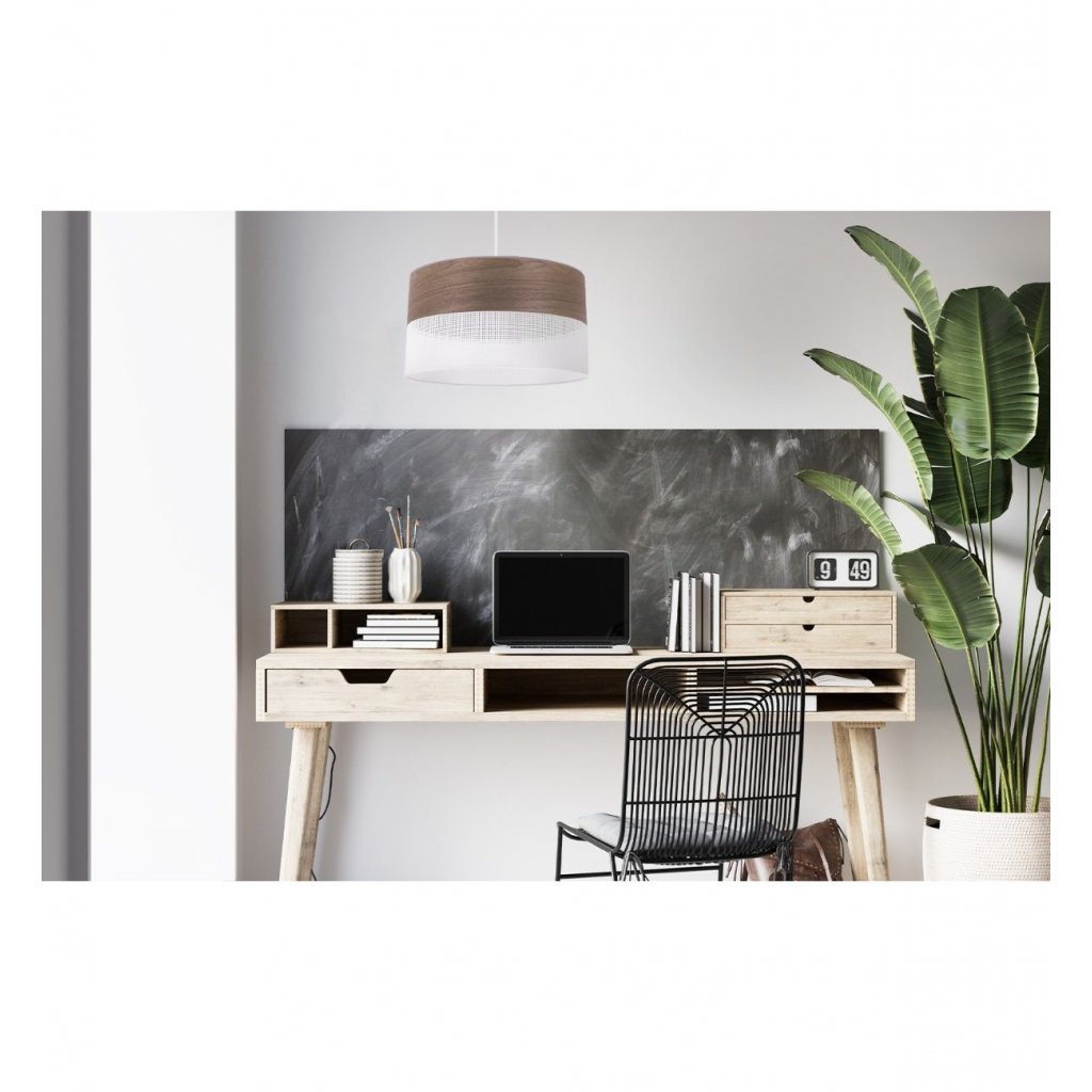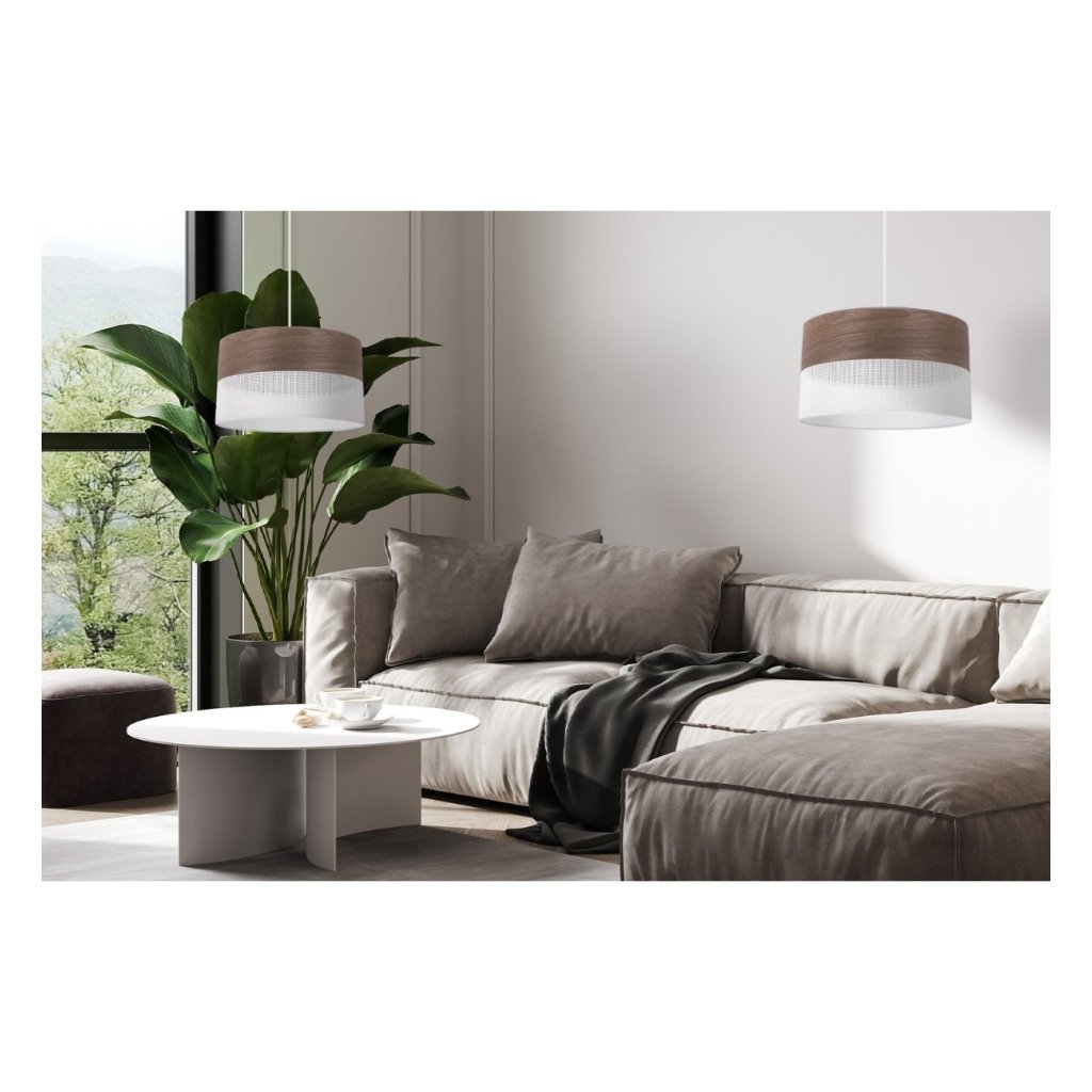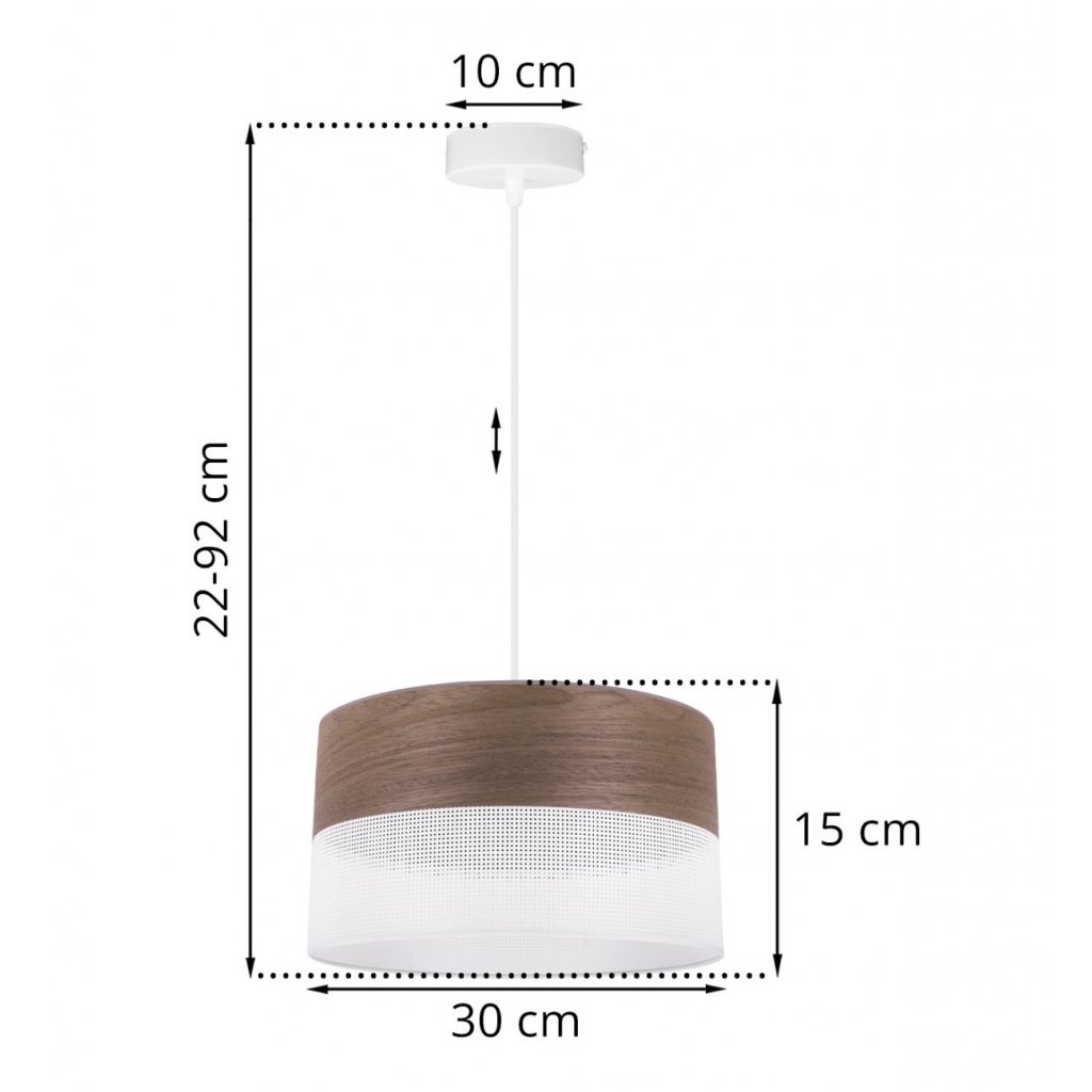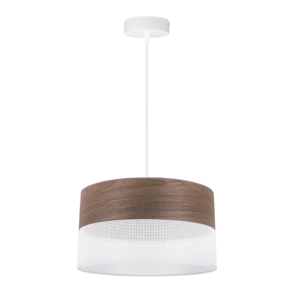 Závěsné svítidlo Wood, 1x hnědá ořechová dýha/bílé plastové stínítko, (fi 30cm)