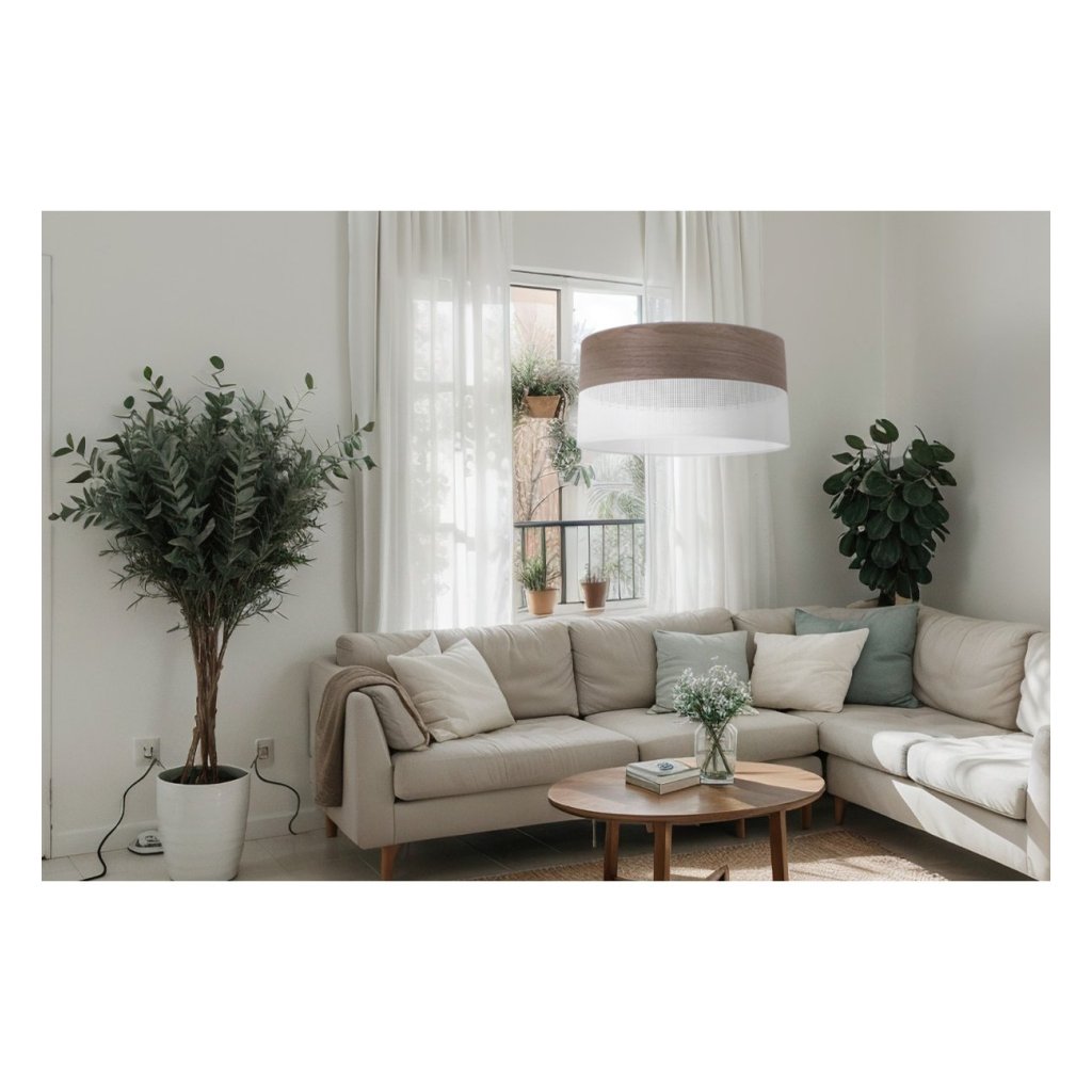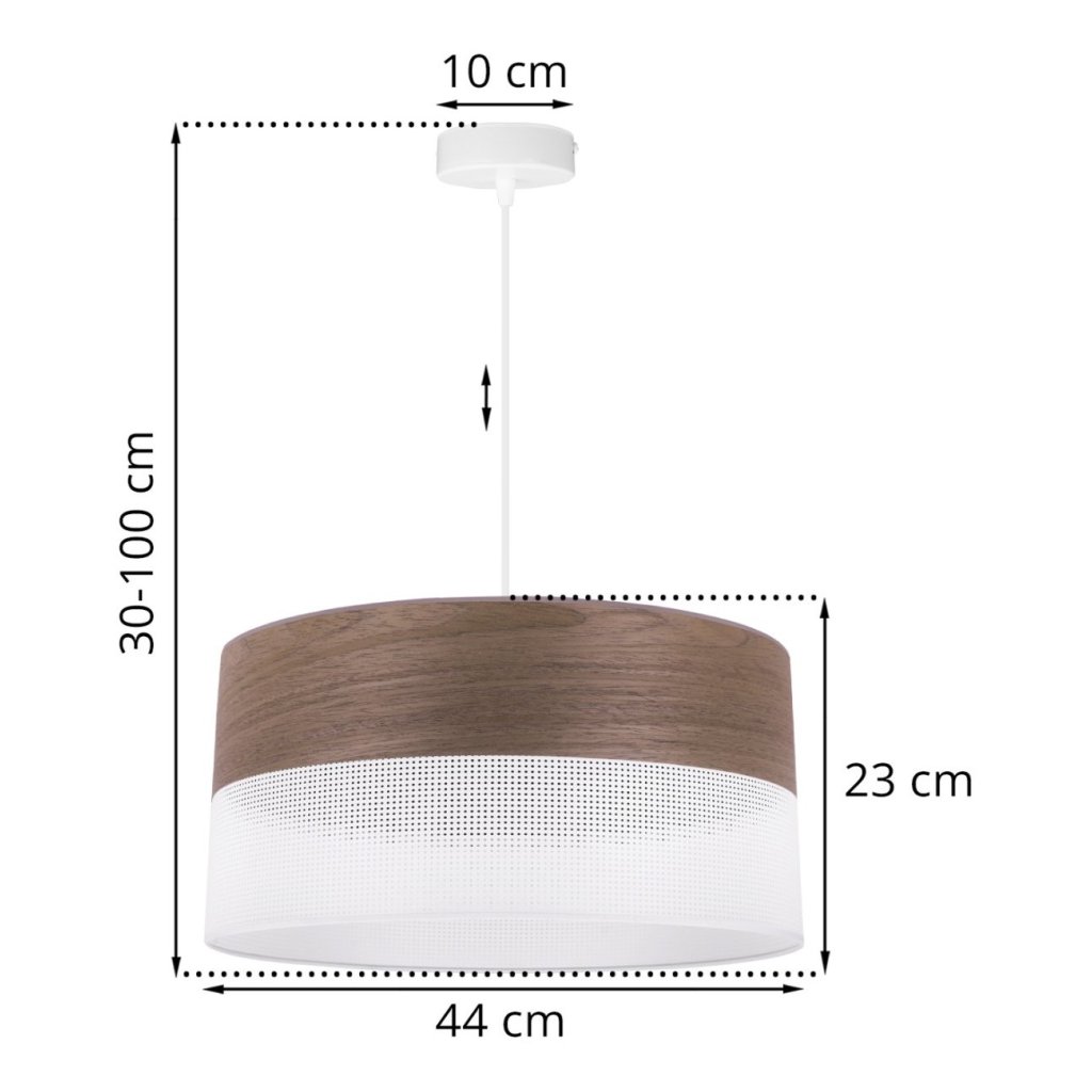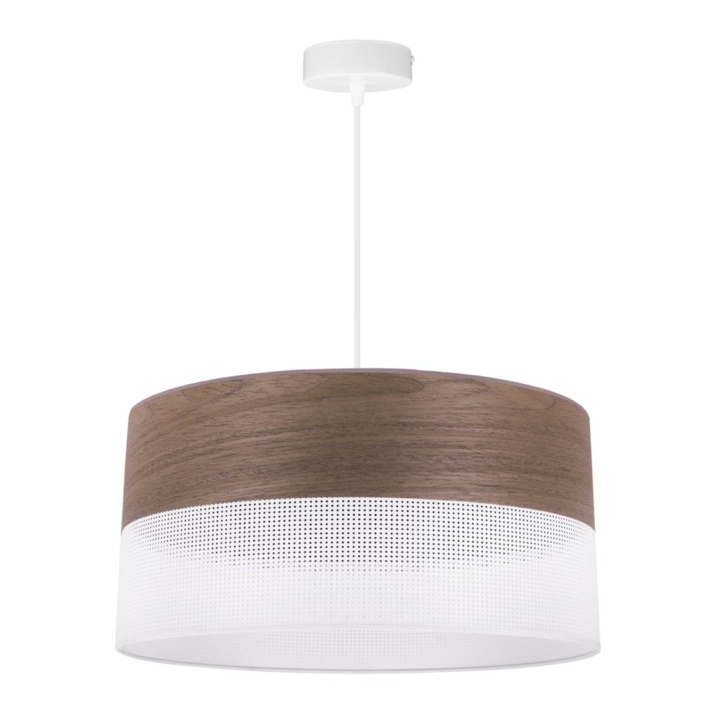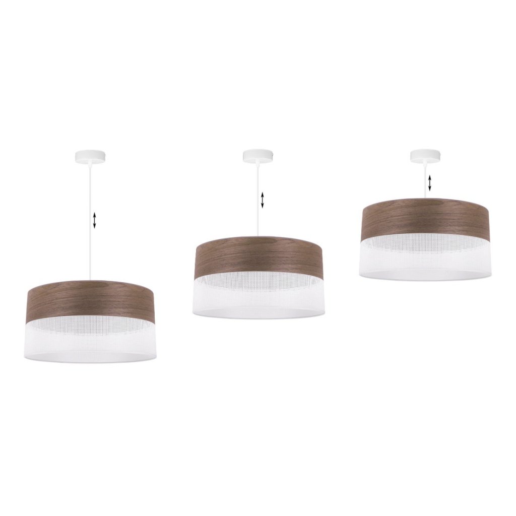 Závěsné svítidlo Wood, 1x hnědá ořechová dýha/bílé plastové stínítko, (fi 44cm)